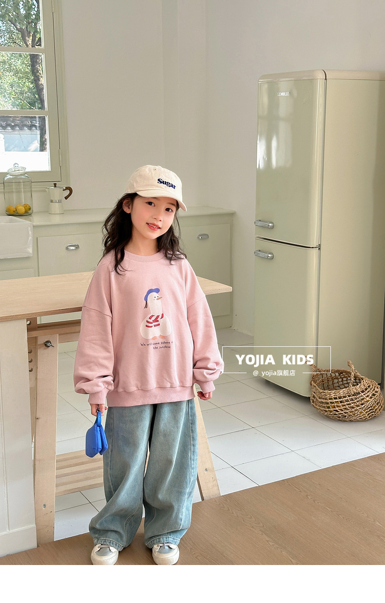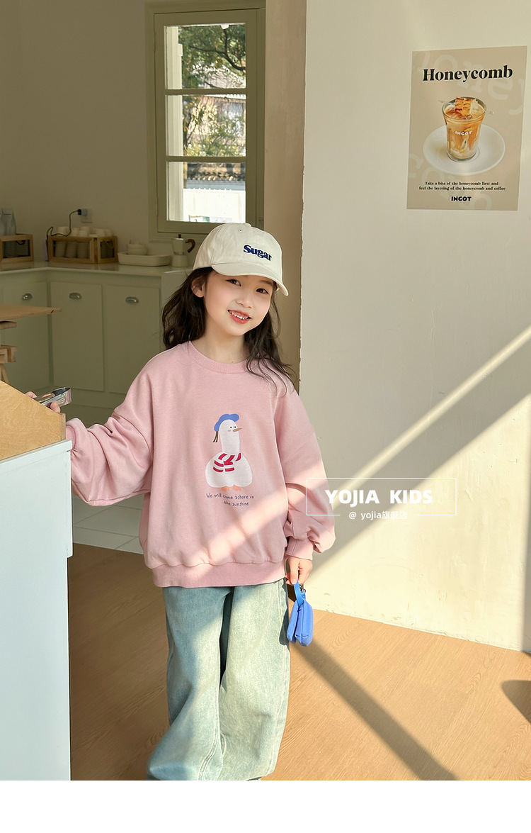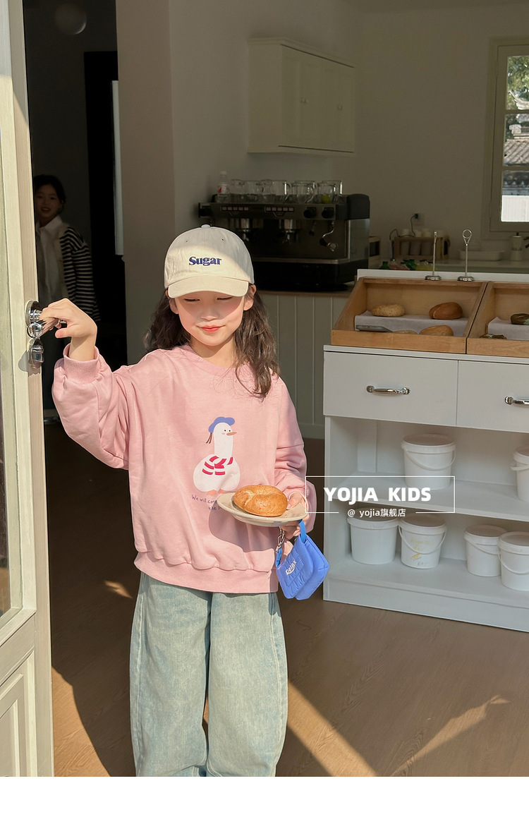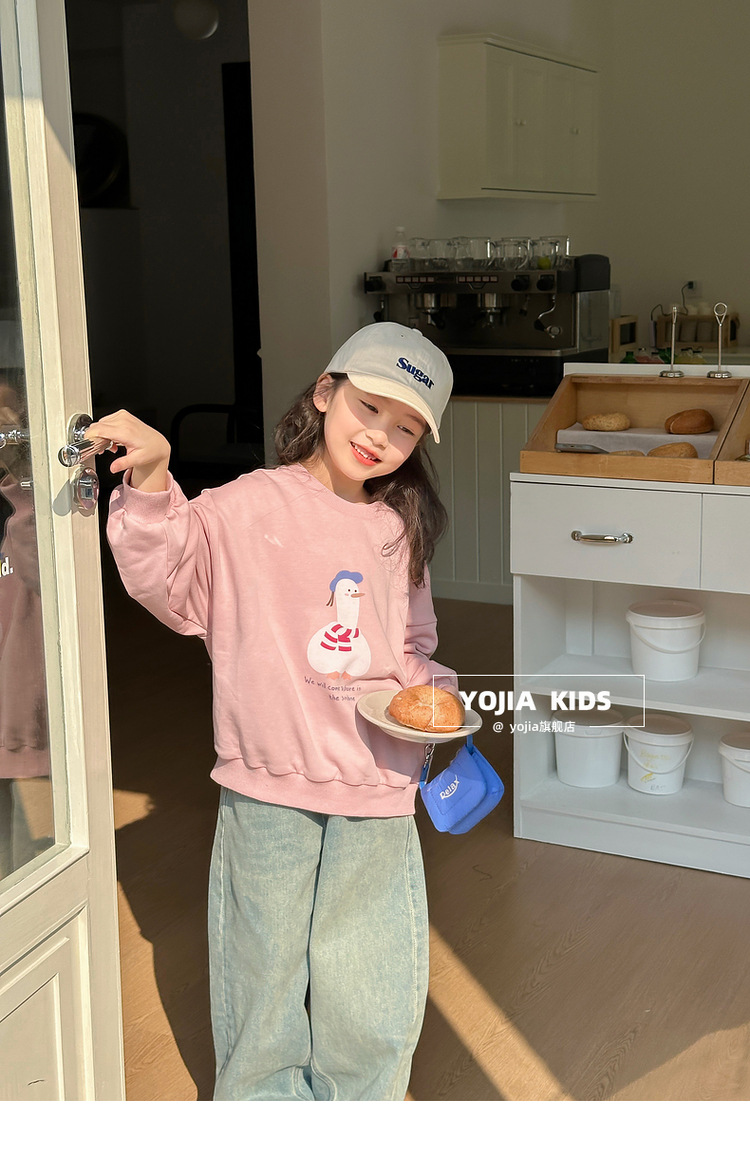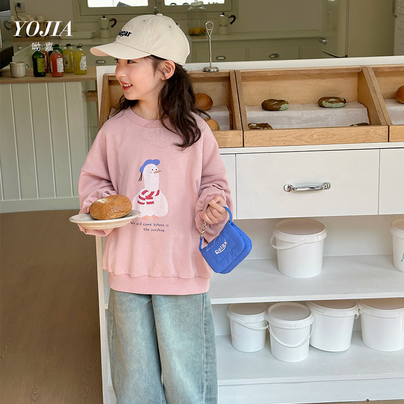 YOJIA 소녀 스웨터 봄 2025 새로운 한국 스타일 인터넷 축하 소녀 풀오버 어린이 긴 소매 탑 봄스토어 가기