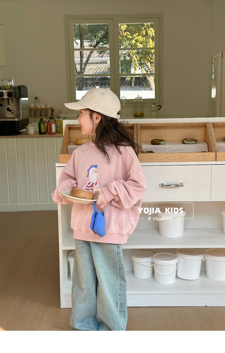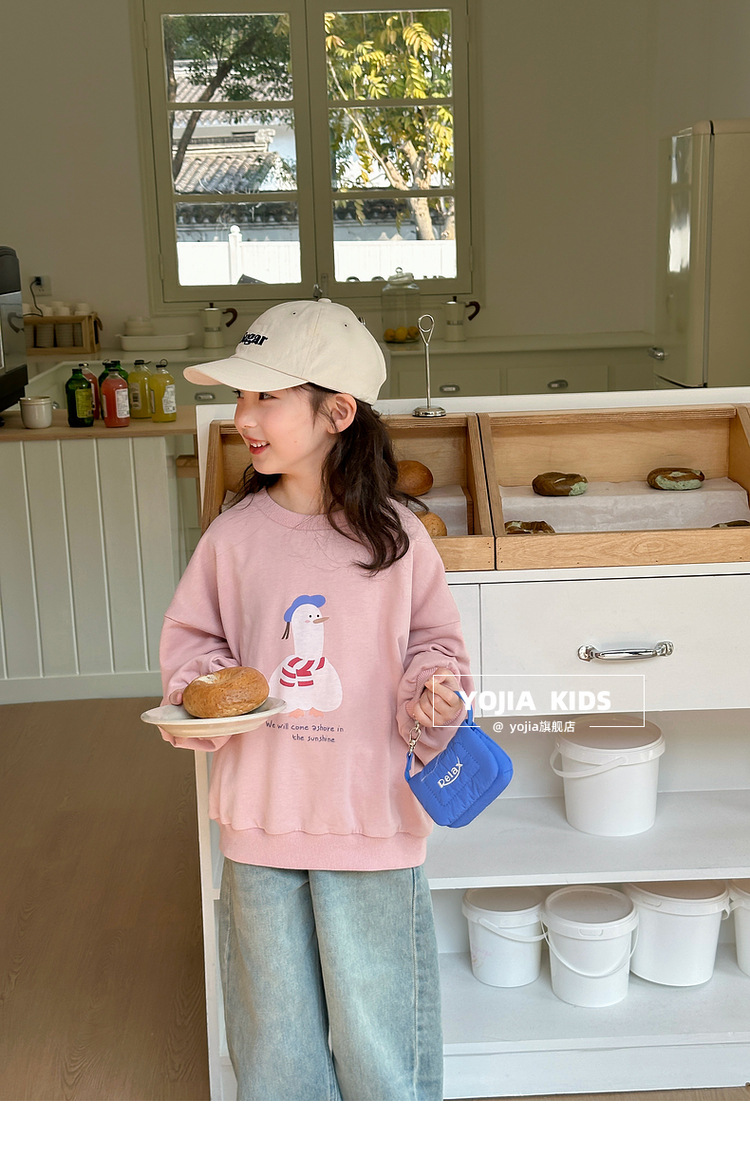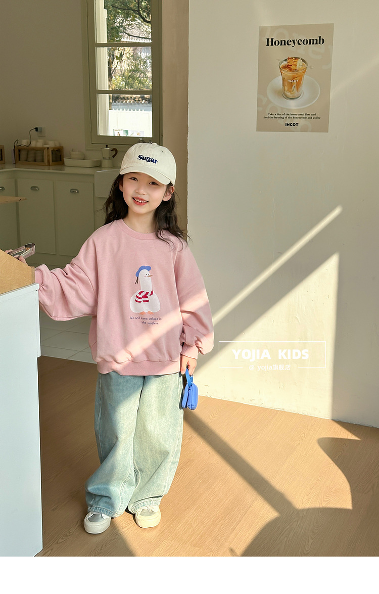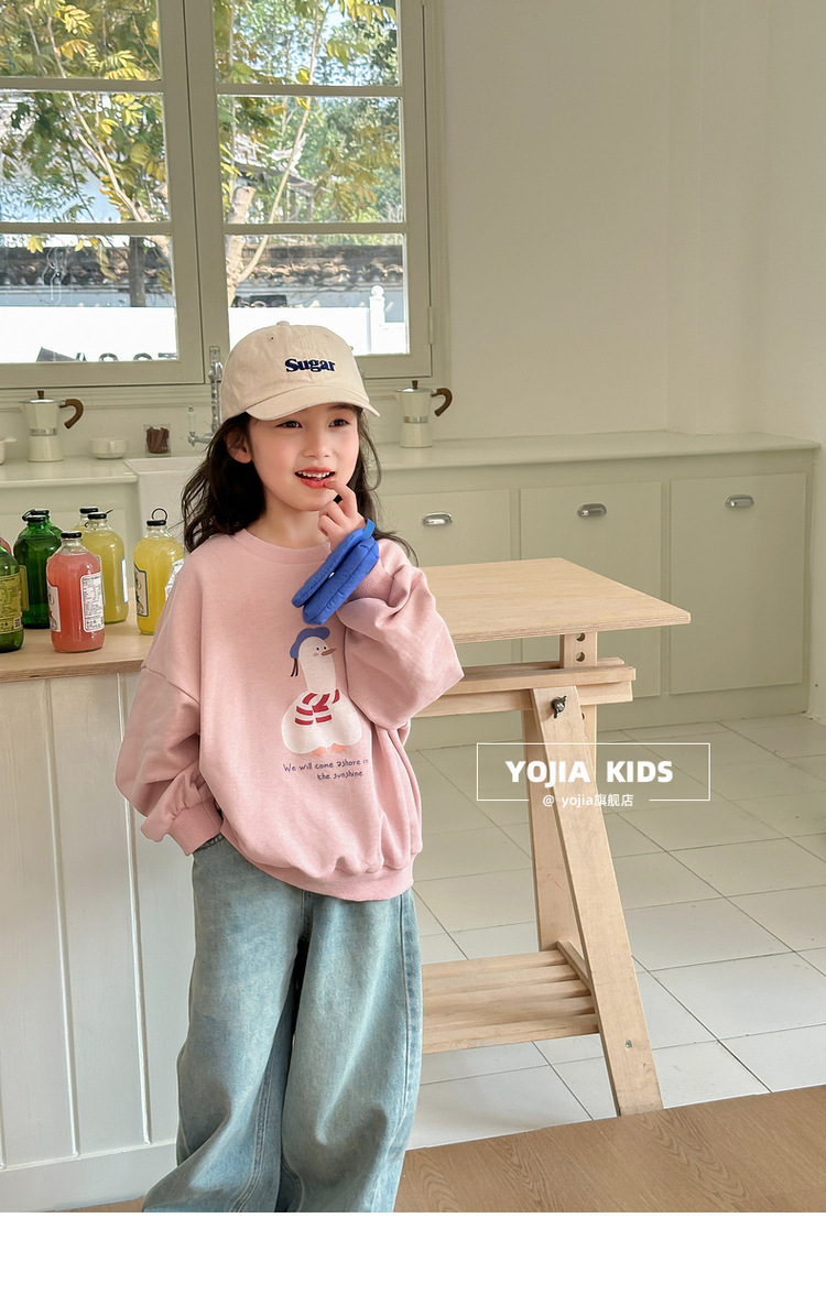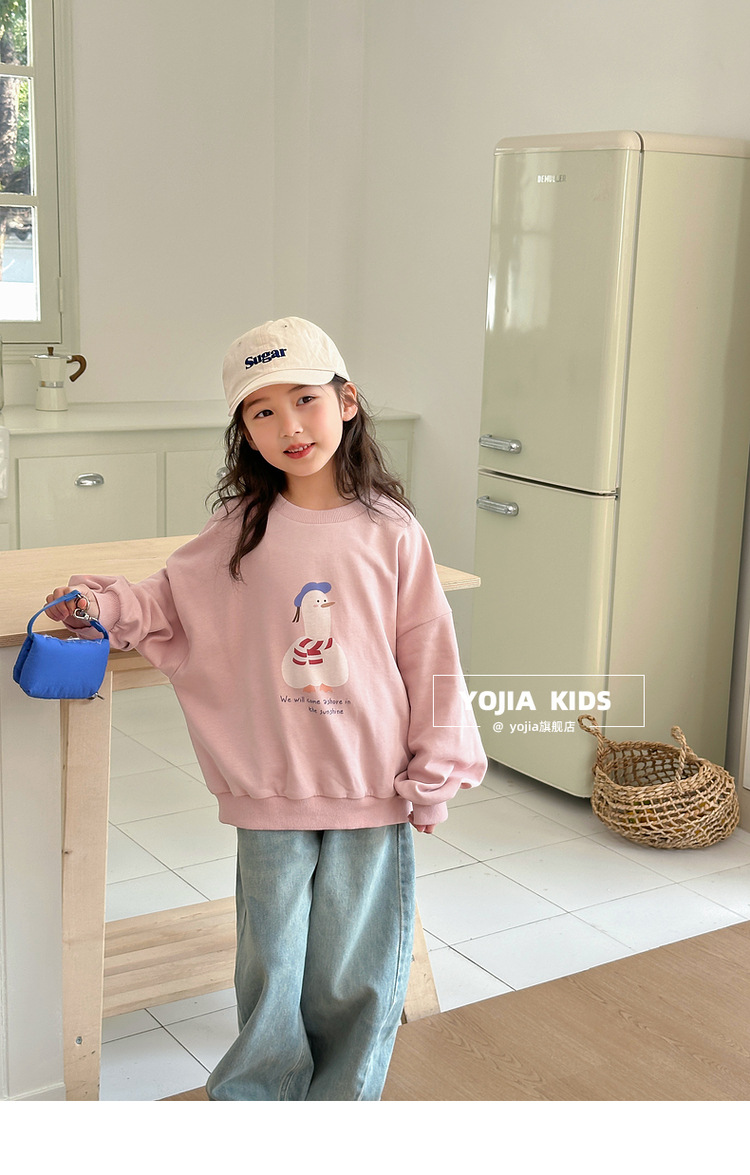 YOJIA 소녀 스웨터 봄 2025 새로운 한국 스타일 인터넷 축하 소녀 풀오버 어린이 긴 소매 탑 봄스토어 가기