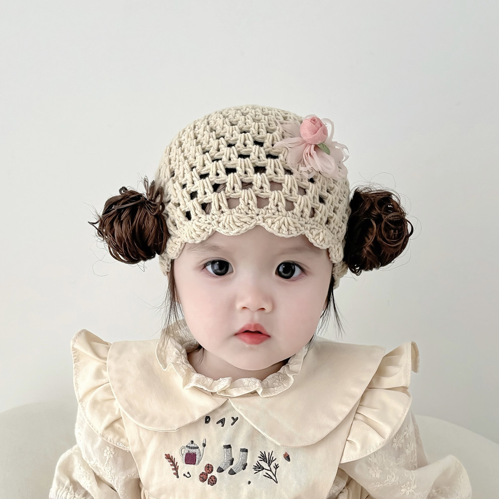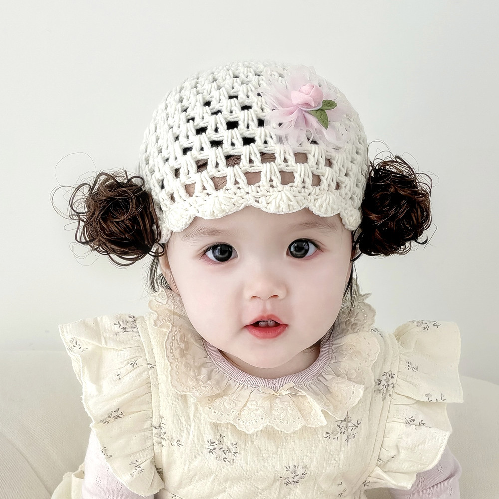 아기 모자 귀여운 슈퍼 귀여운 한국 가을 새로운 아기 가발 모자 공주 수제 짠 한국 소녀