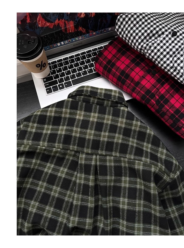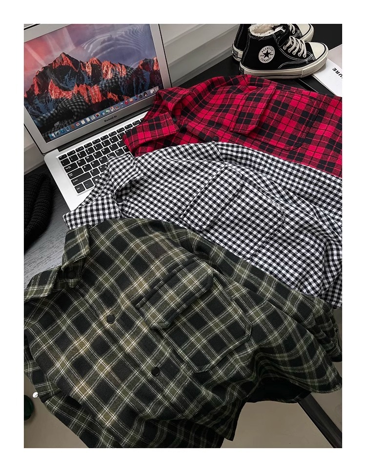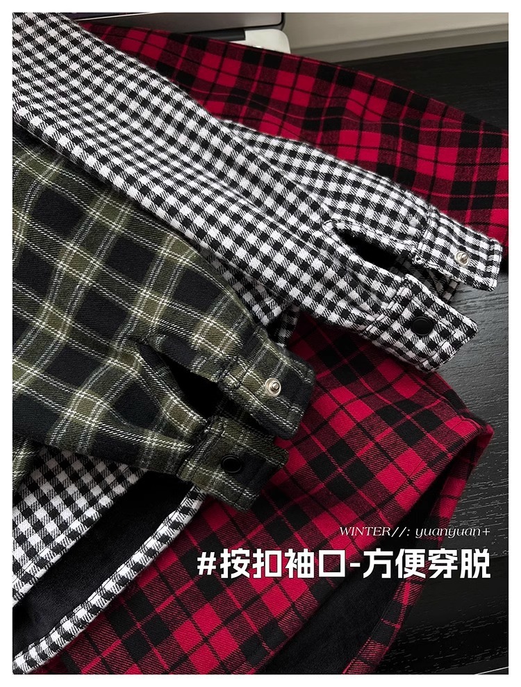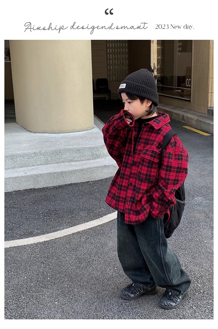 소년의 기모 격자 무늬 셔츠 재킷 봄과 가을 2024 새로운 가을과 겨울 어린이 옷깃 상단 긴 소매 셔츠스토어 가기