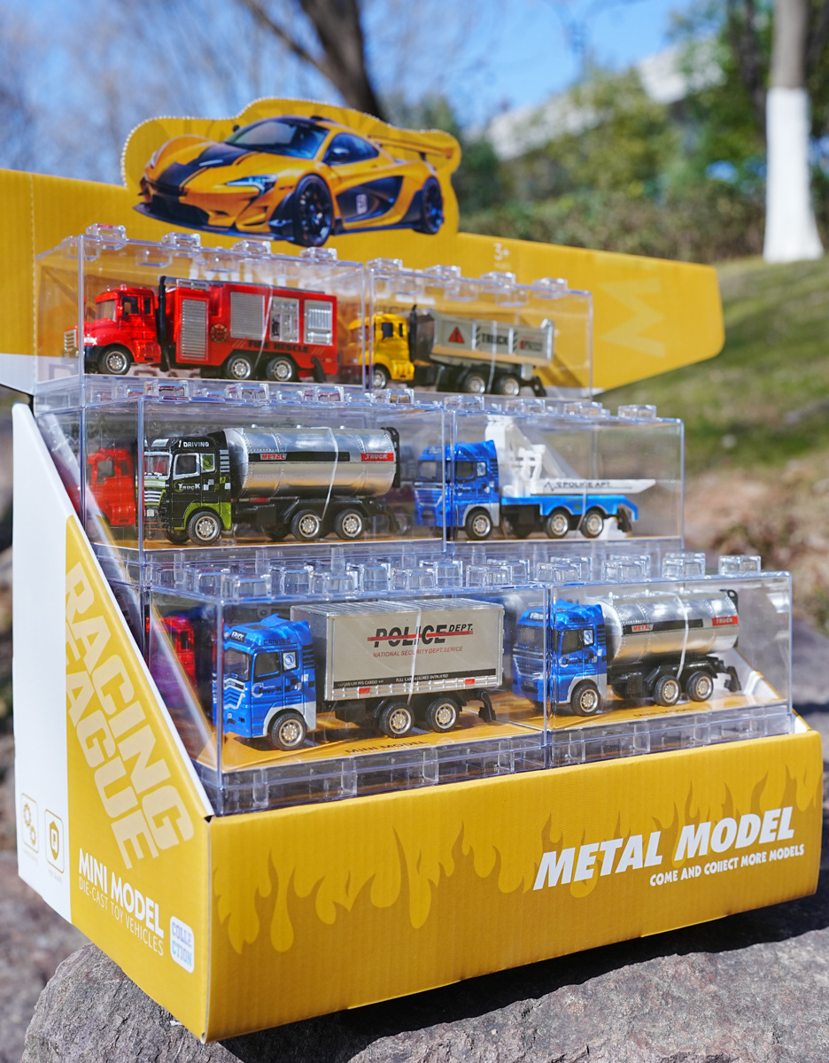 1:36 빌딩 블록 상자 합금 컨테이너 트럭 엔지니어링 자동차 모델 어린이 장난감 자동차 세트 합금 자동차 모델 소년 선물스토어 가기