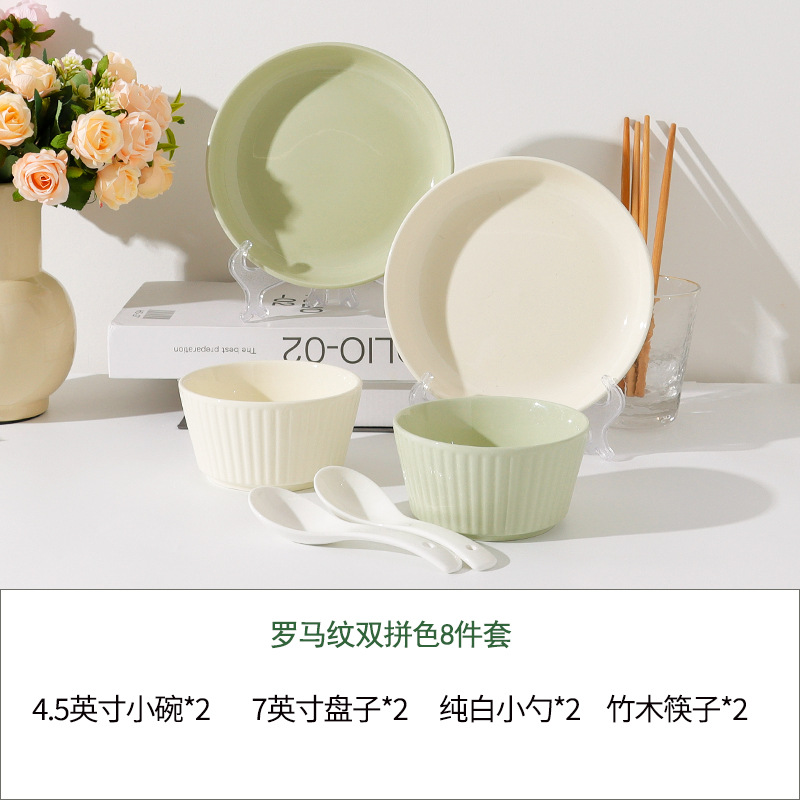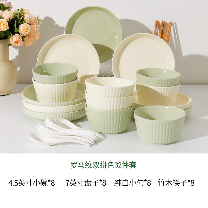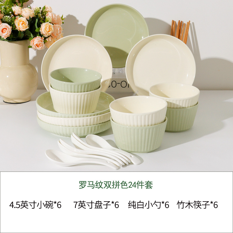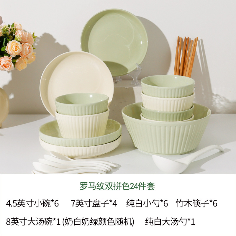 • 로만 무늬 더블 컬러 매칭 그릇 8개 접시 6개 숟가락 8개 젓가락 8개 큰 국그릇 큰 국숟가락