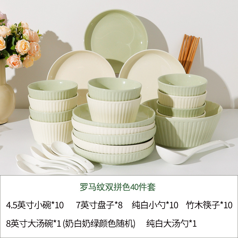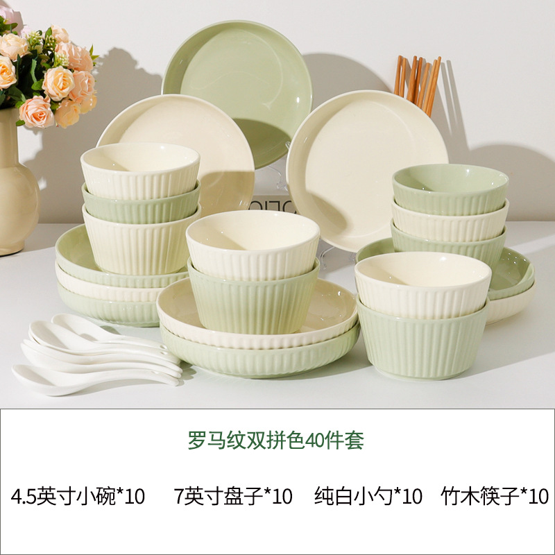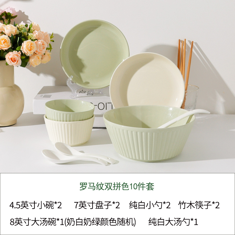 • 로만 무늬 더블 컬러 매칭 그릇 10개 접시 8개 숟가락 10개 젓가락 10개 큰 국그릇 큰 국숟가락
