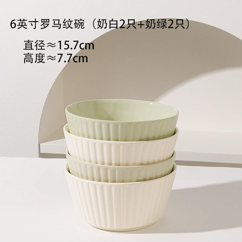 • 6inch 로마무늬 그릇 2개, 유백색 2개 + 밀크그린 2개