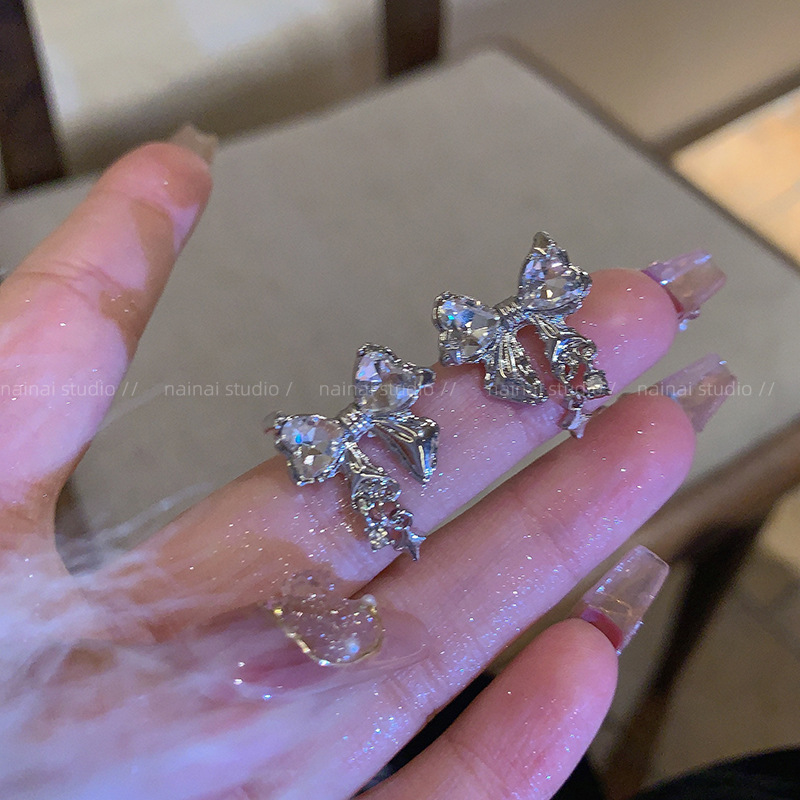 다이아몬드 활 양조 스타 펜던트 귀걸이 달콤한 기질 틈새 디자인 고급 귀걸이 술 인터넷 연예인 귀걸이스토어 가기