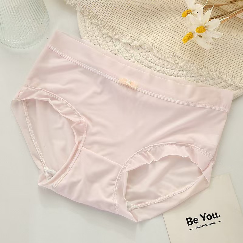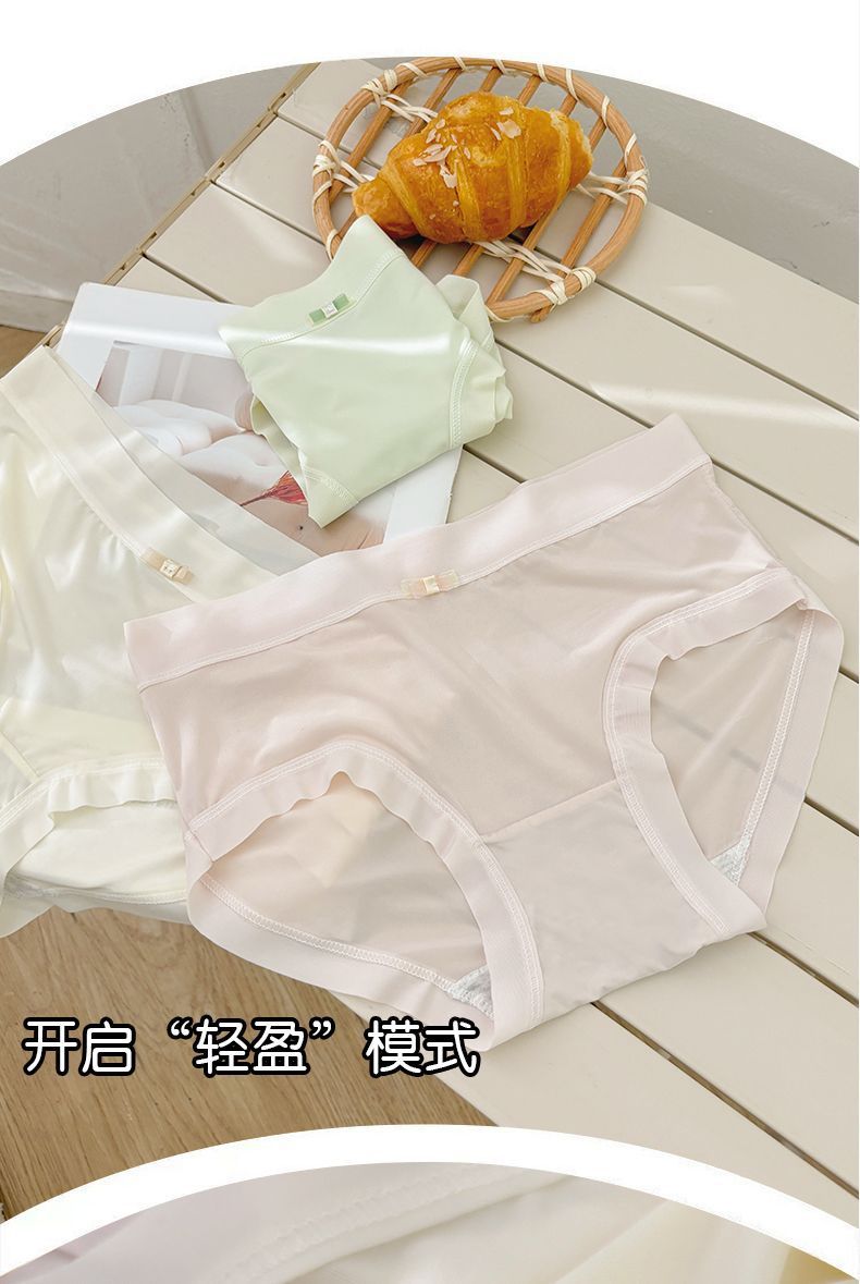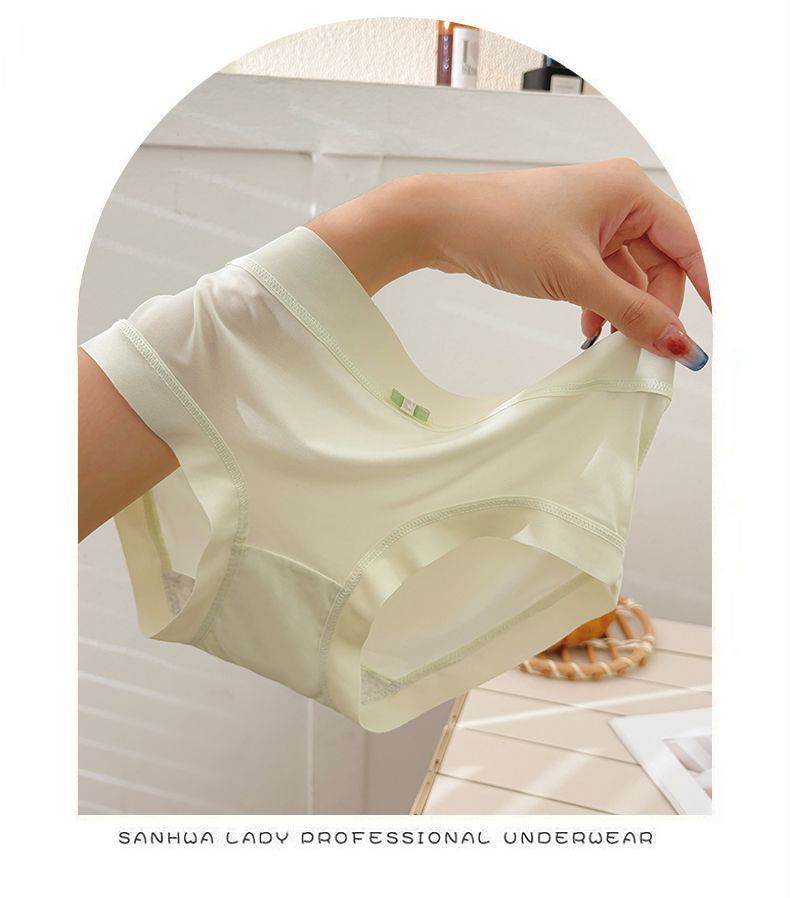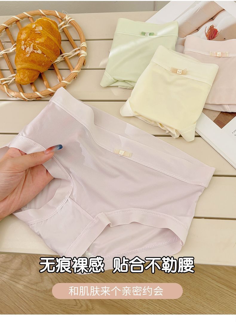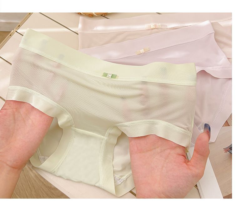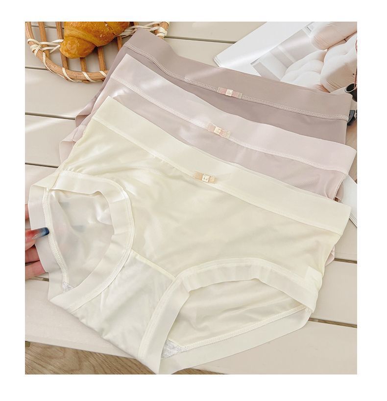 일본의 추적없는 아이스 실크 속옷 여성의 여름 얇은 항균 중간 허리 마스크 단색 빠른 건조 섹시한 브리프스토어 가기
