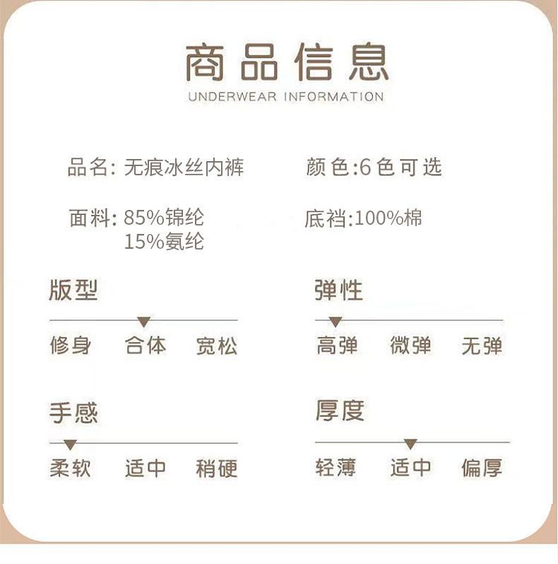 일본의 추적없는 아이스 실크 속옷 여성의 여름 얇은 항균 중간 허리 마스크 단색 빠른 건조 섹시한 브리프