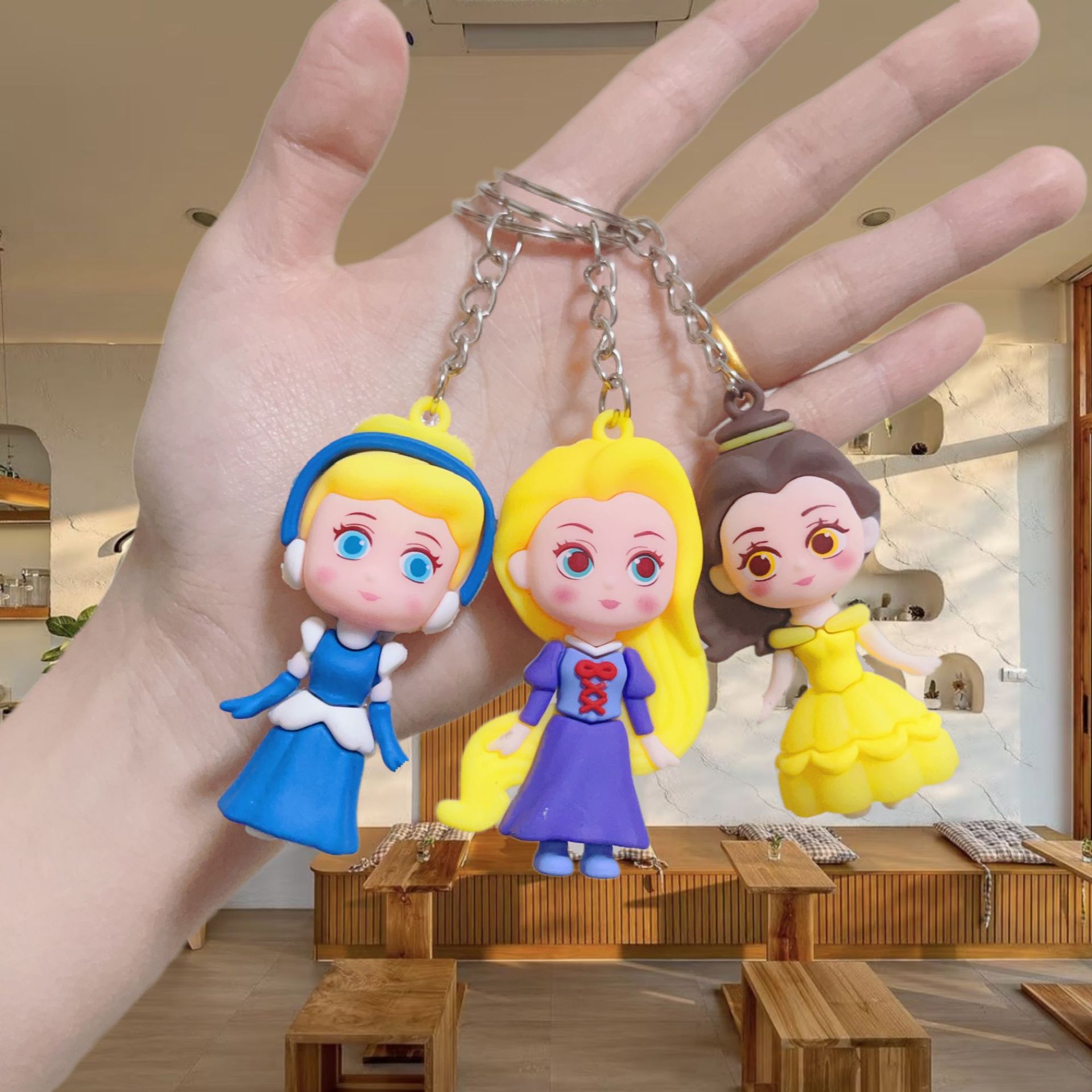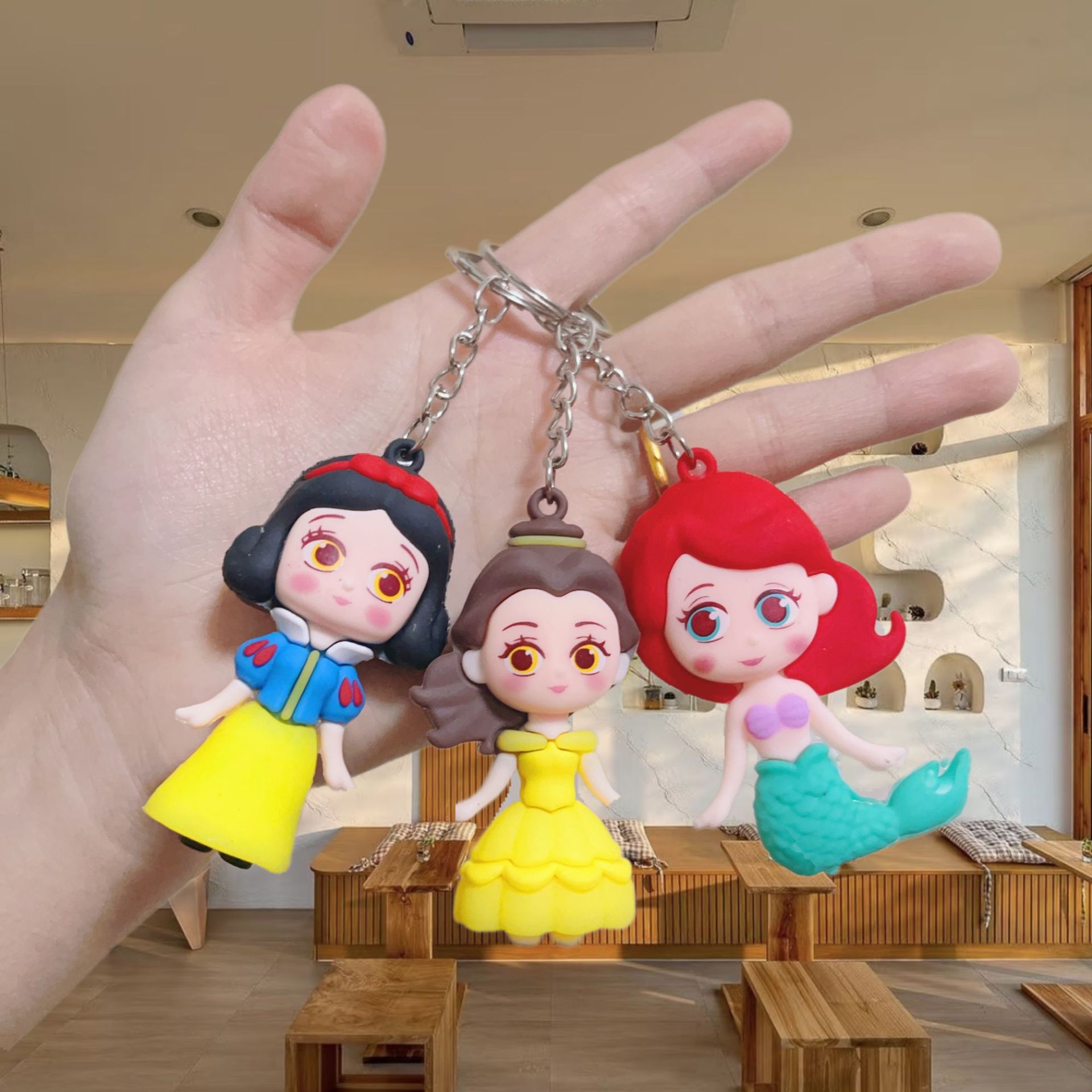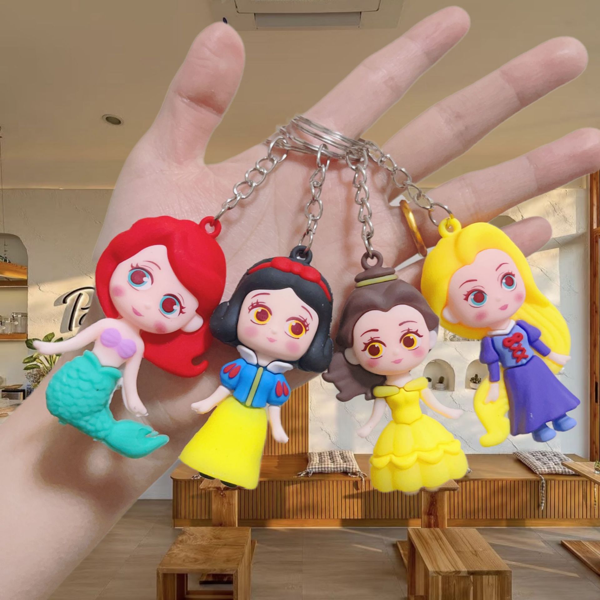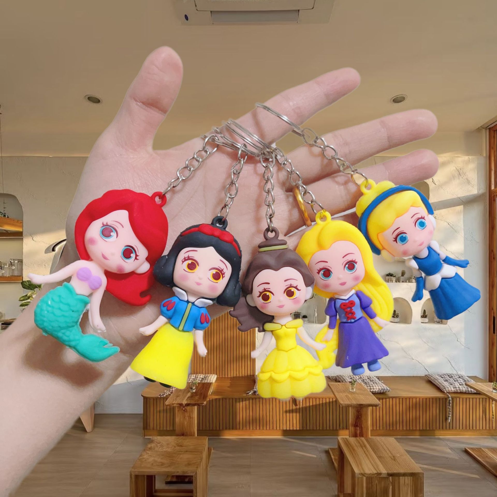 백설 공주 키 체인 만화 요정 공주 냉동 인형 키 체인 PVC 자동차 매달려 장식품 도매