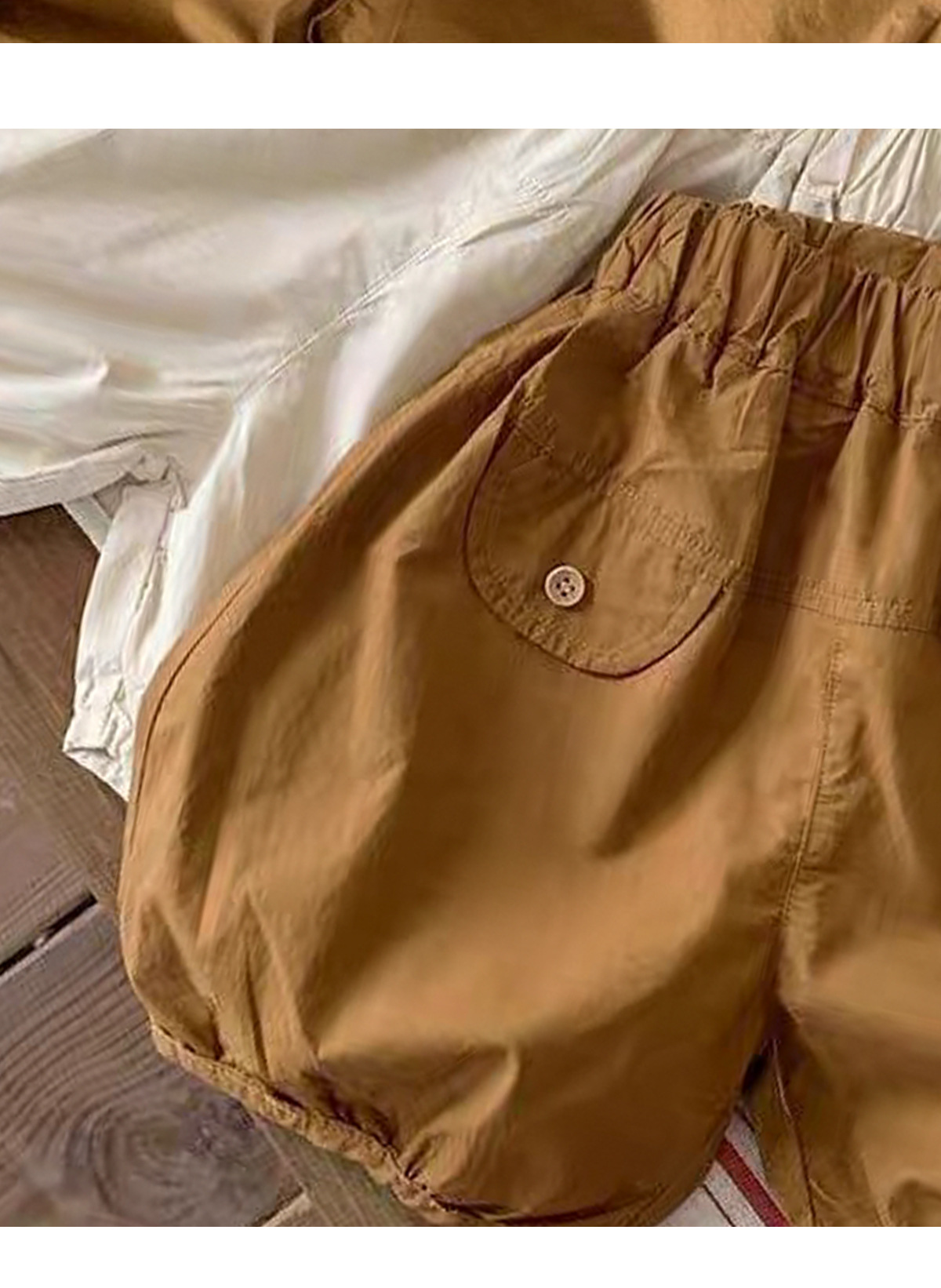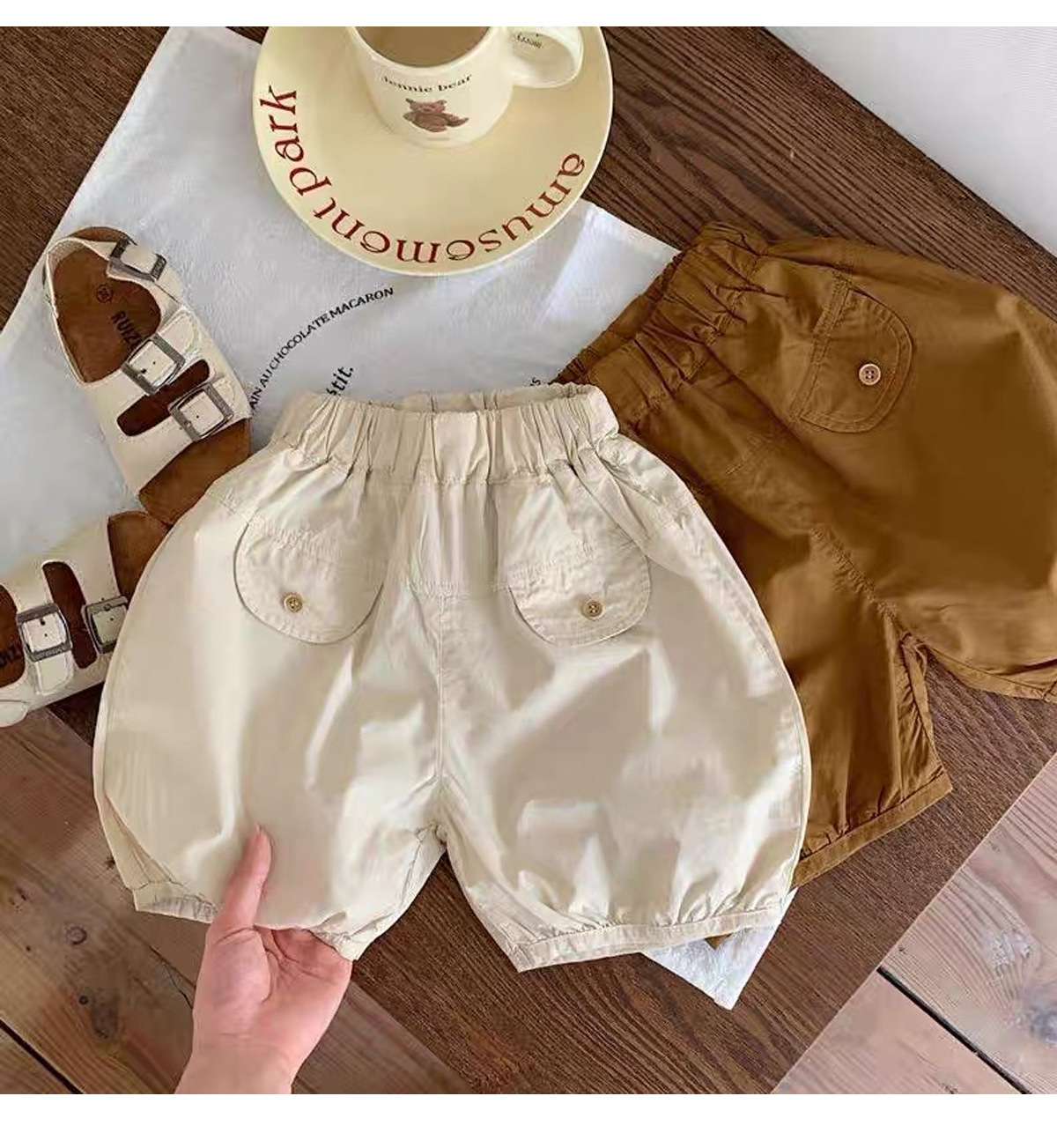 여름 새 2025 대형 포켓 경량 코튼 리넨 바지 한국 스타일 어린이 느슨한 외부 착용 짧은 바지 소년 소녀