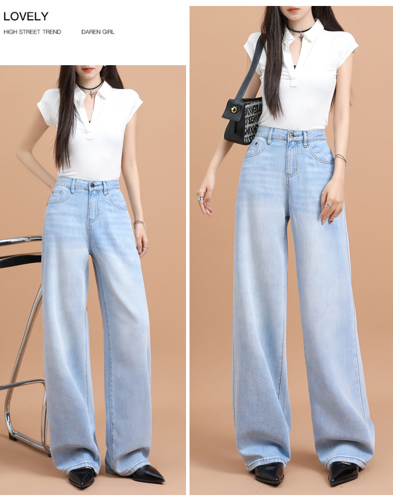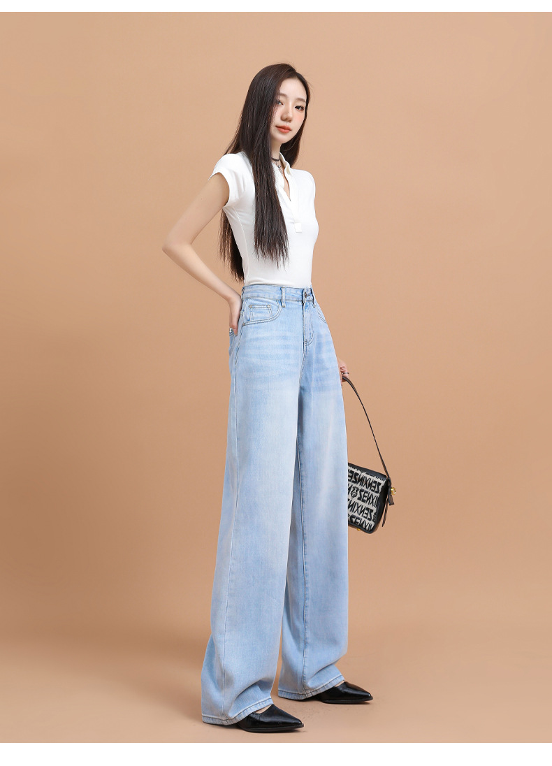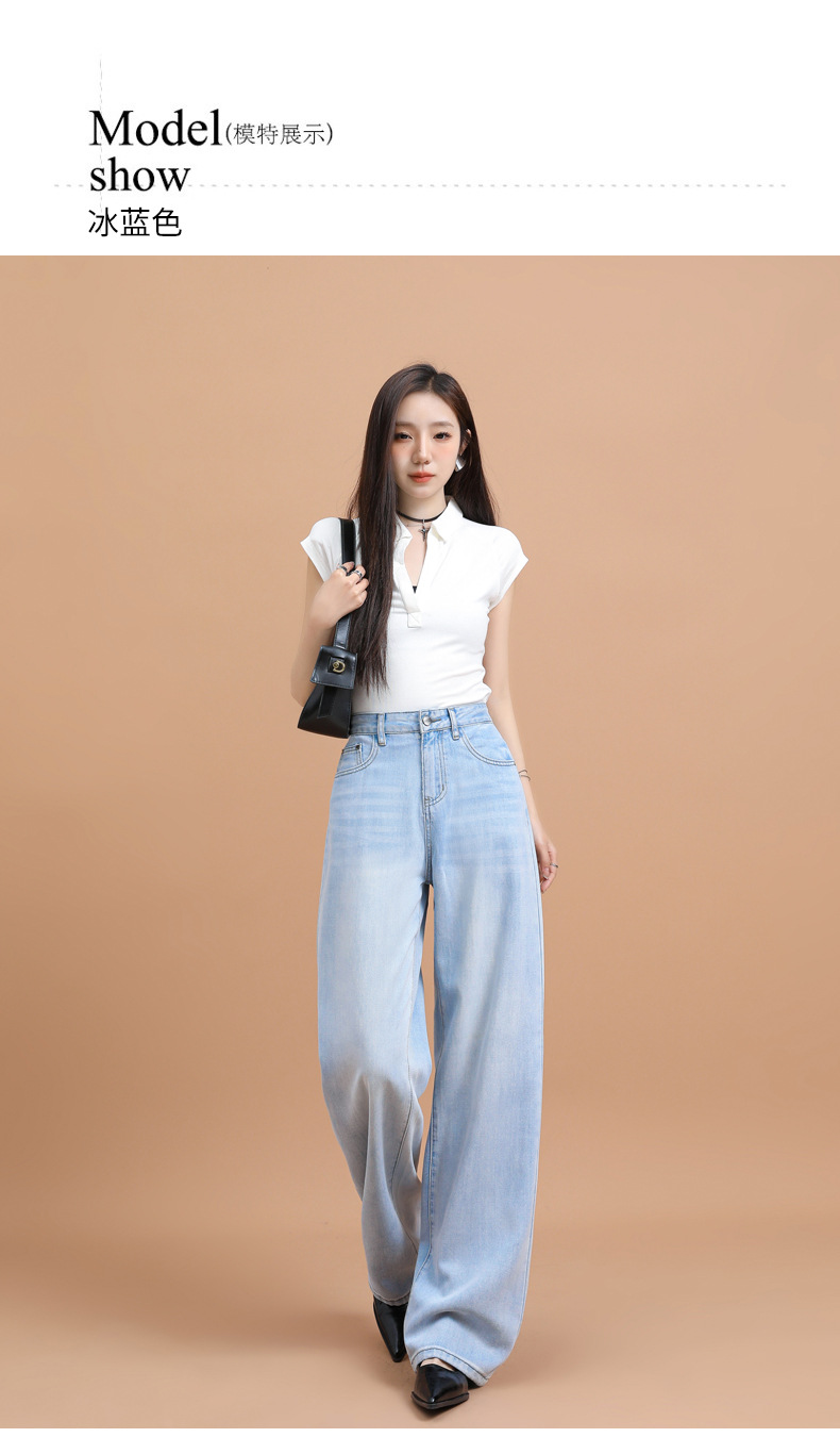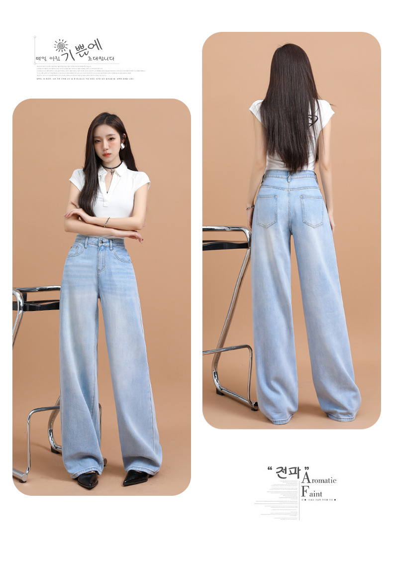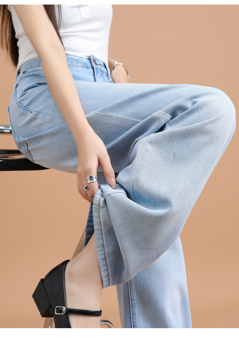 텐셀 청바지 여성용 여름 얇은 2025 새로운 스타일 작은 딥 좁은 판 스트레이트 아이스 실크 넓은 다리 바지스토어 가기