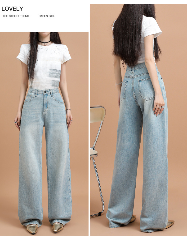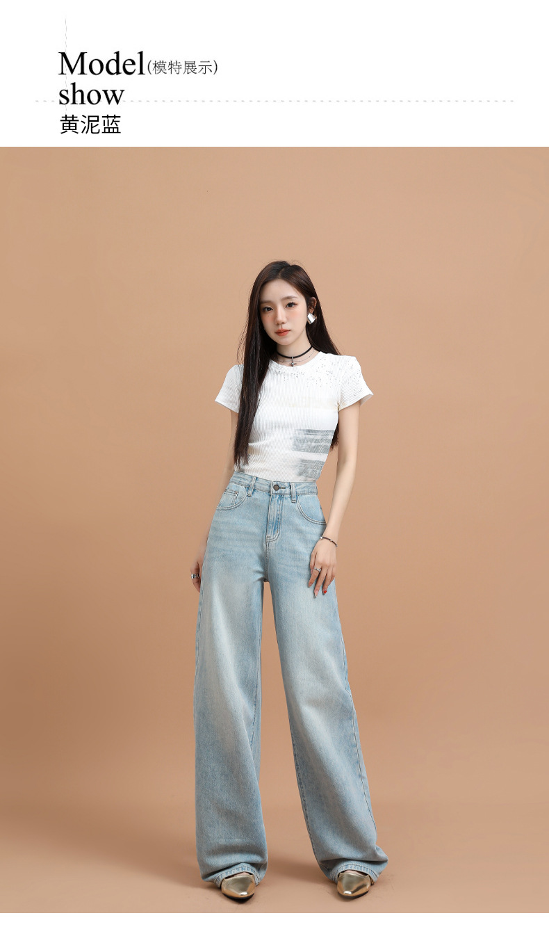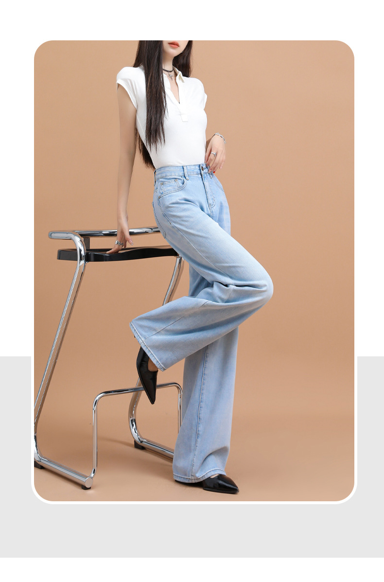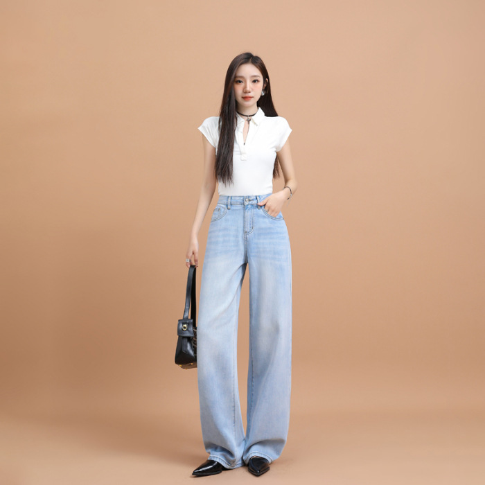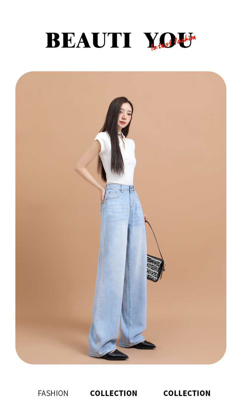 텐셀 청바지 여성용 여름 얇은 2025 새로운 스타일 작은 딥 좁은 판 스트레이트 아이스 실크 넓은 다리 바지스토어 가기