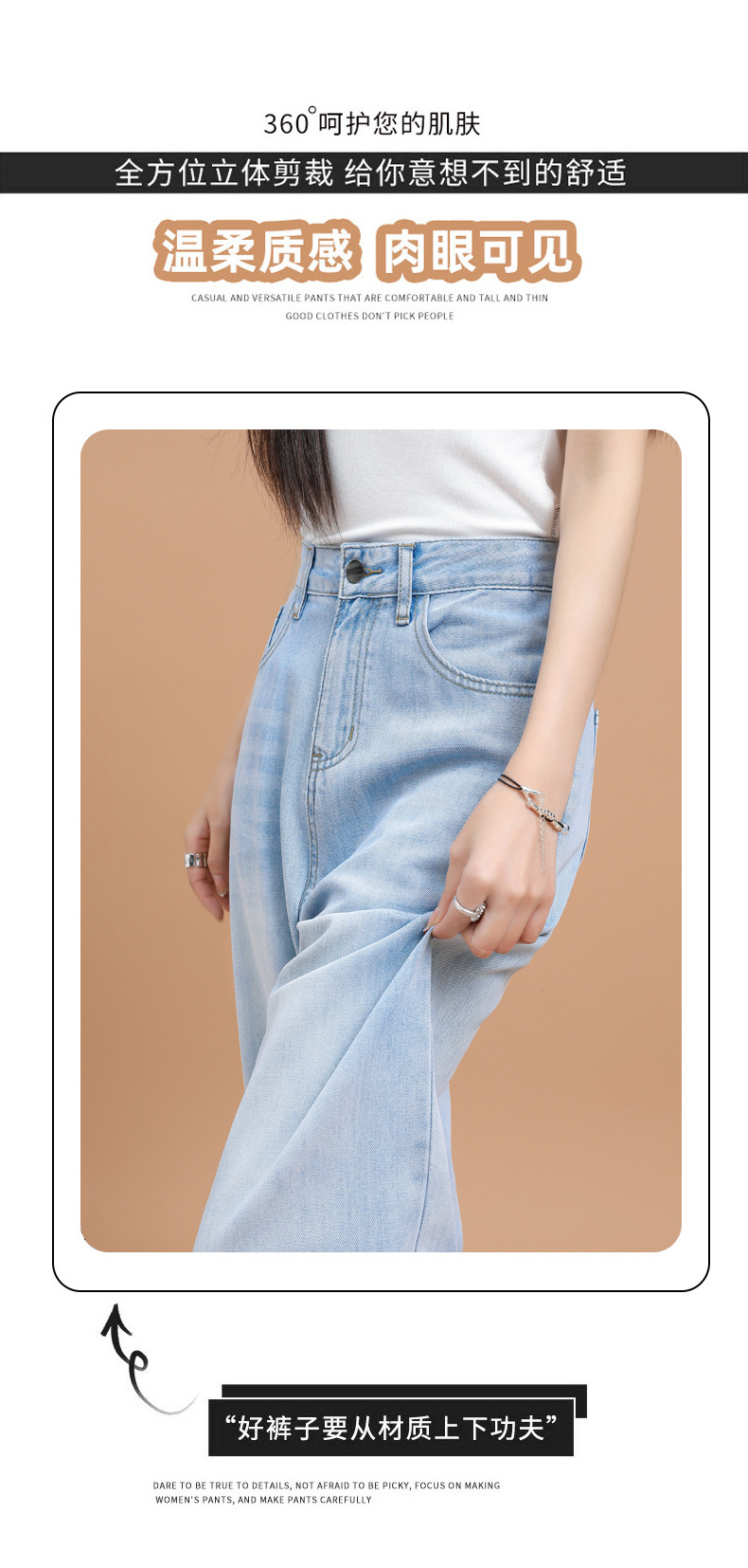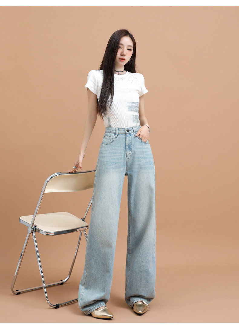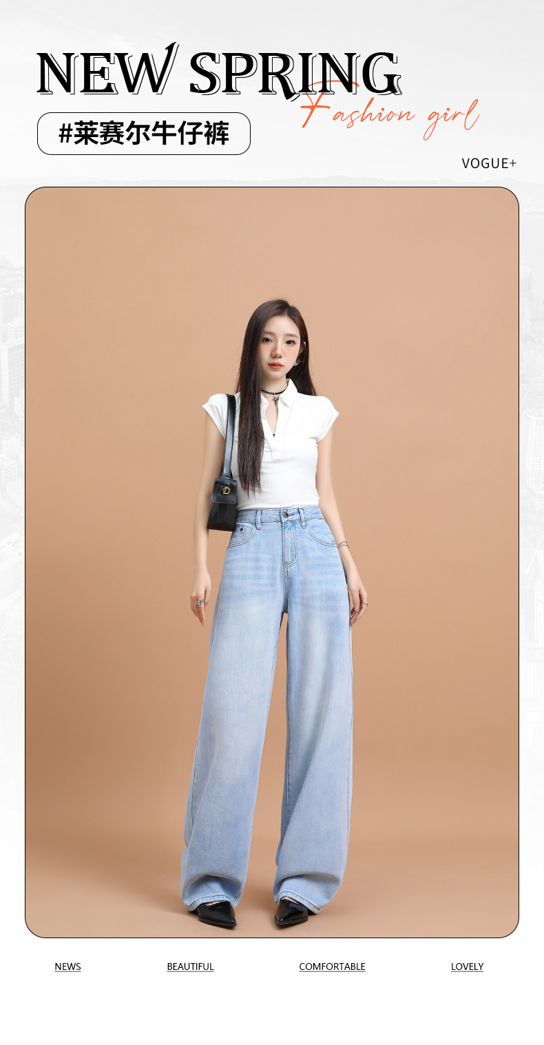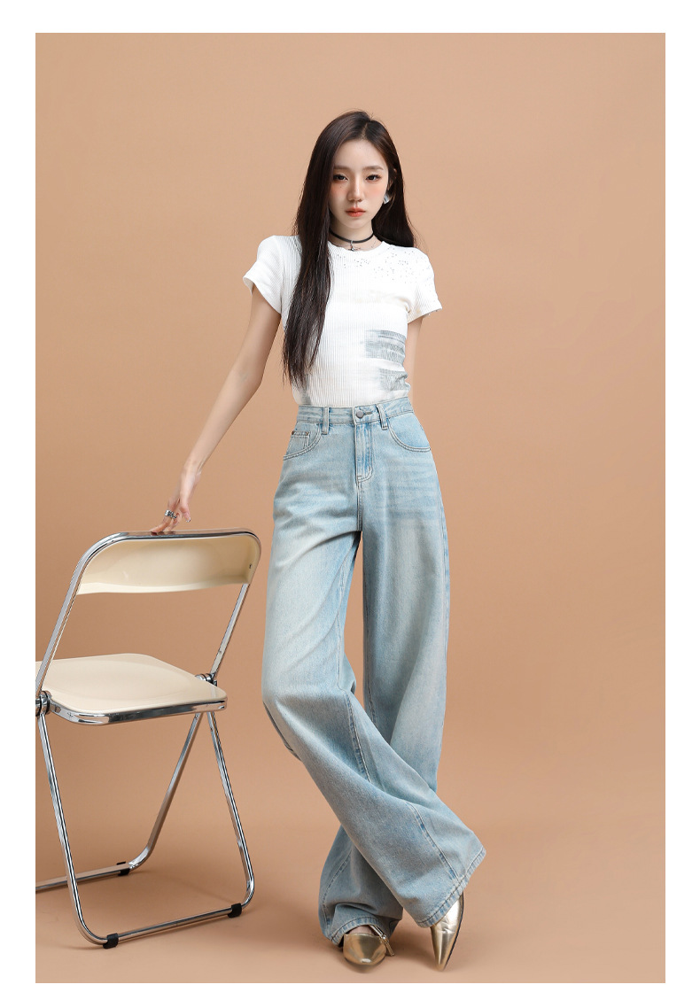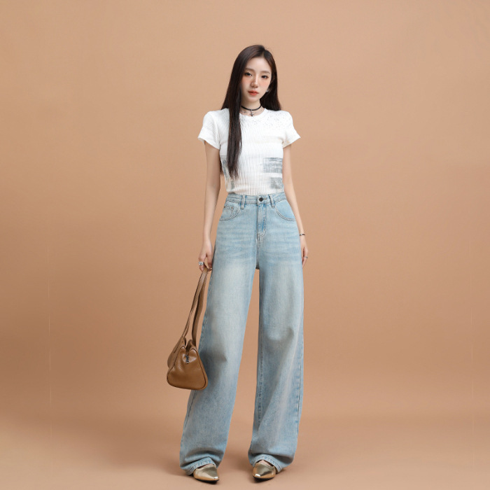 텐셀 청바지 여성용 여름 얇은 2025 새로운 스타일 작은 딥 좁은 판 스트레이트 아이스 실크 넓은 다리 바지스토어 가기