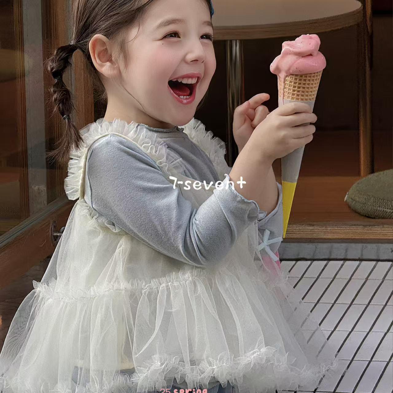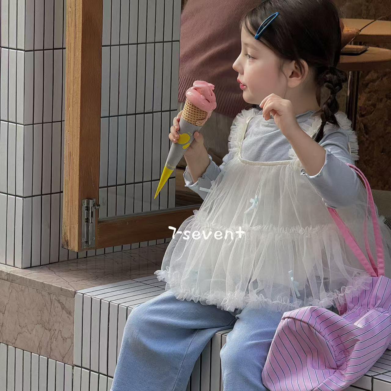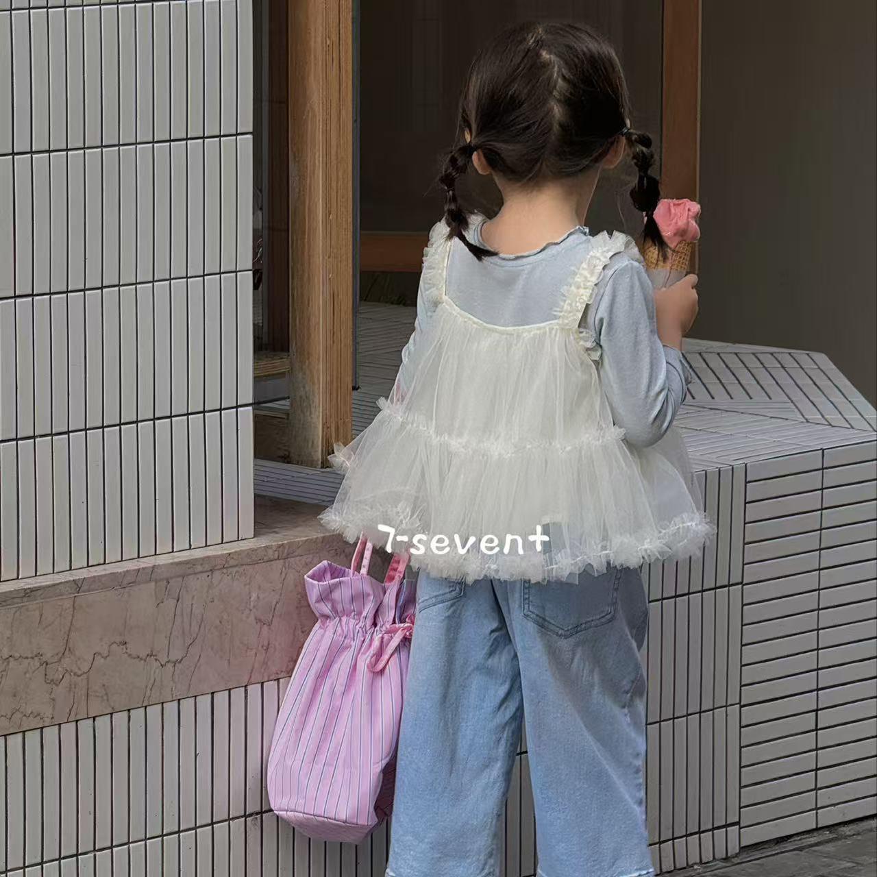 스위트 쇼트 여아복 세트 25 봄 신상 아동 패션 달콤한 스타일의 끈 스커트와 레이어드 셔츠 데님 팬츠스토어 가기