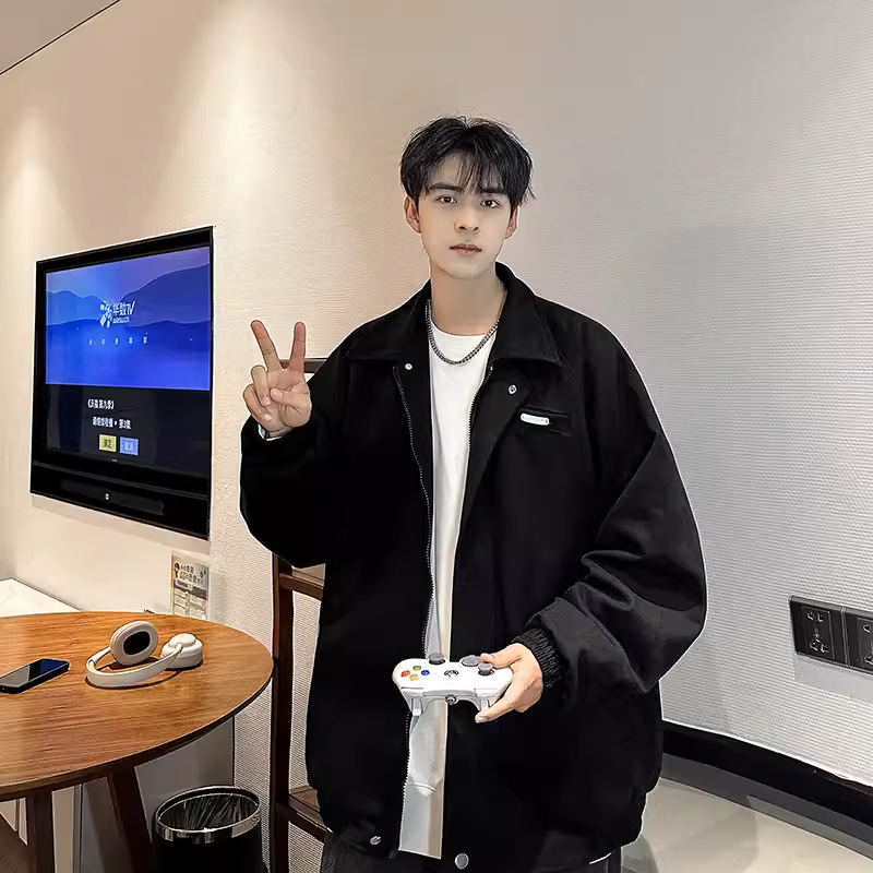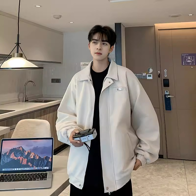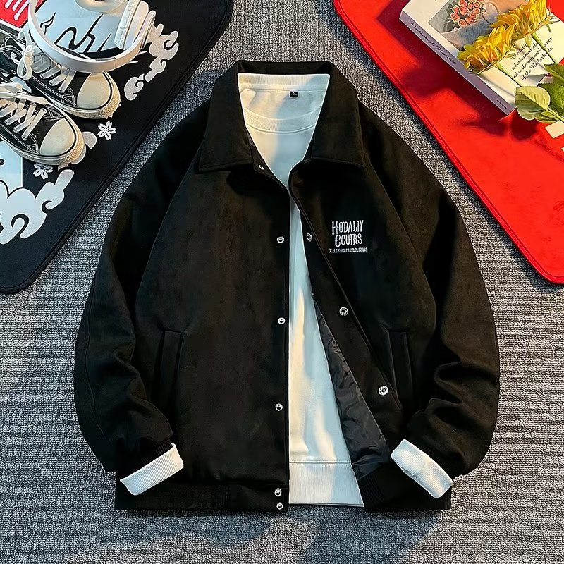 그레이 그린 디어스킨 벨벳 옷깃 야구 세트 남자 느슨한 봄과 가을 유행 브랜드 무거운 따뜻한 재킷 재킷 빈티지스토어 가기
