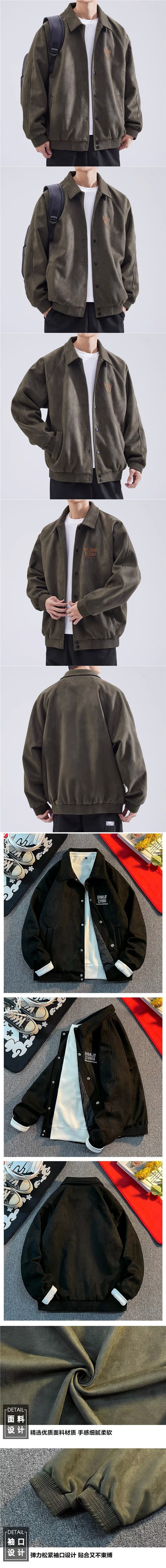그레이 그린 디어스킨 벨벳 옷깃 야구 세트 남자 느슨한 봄과 가을 유행 브랜드 무거운 따뜻한 재킷 재킷 빈티지