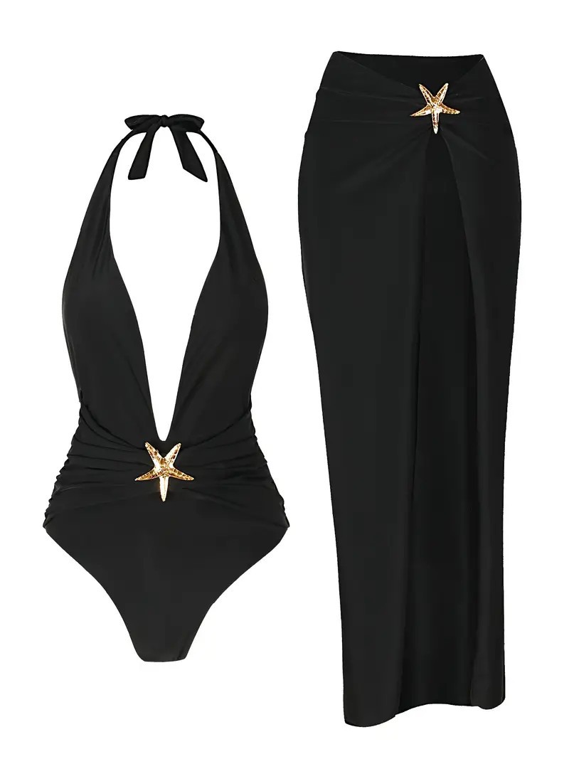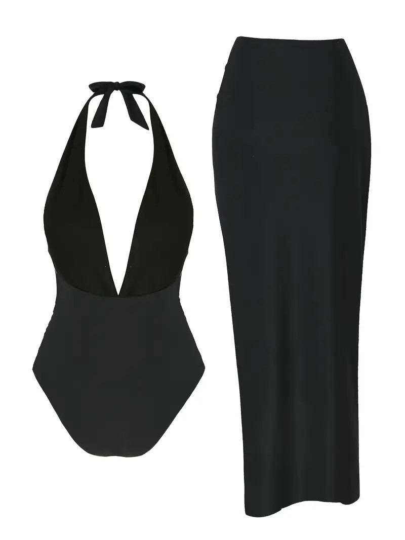 스플릿 수영복 국경을 넘나 드는 유럽 섹시 뷰티 여성 스플릿 원피스 홀터 섹시한 백리스 롱 원피스 여름 비키니