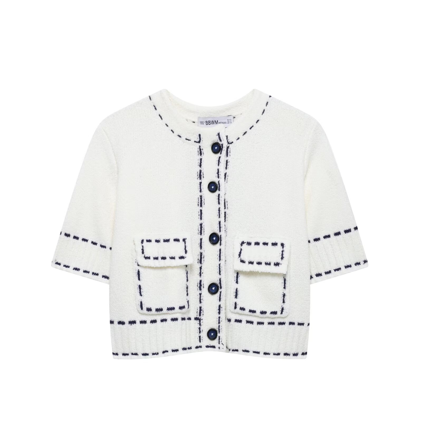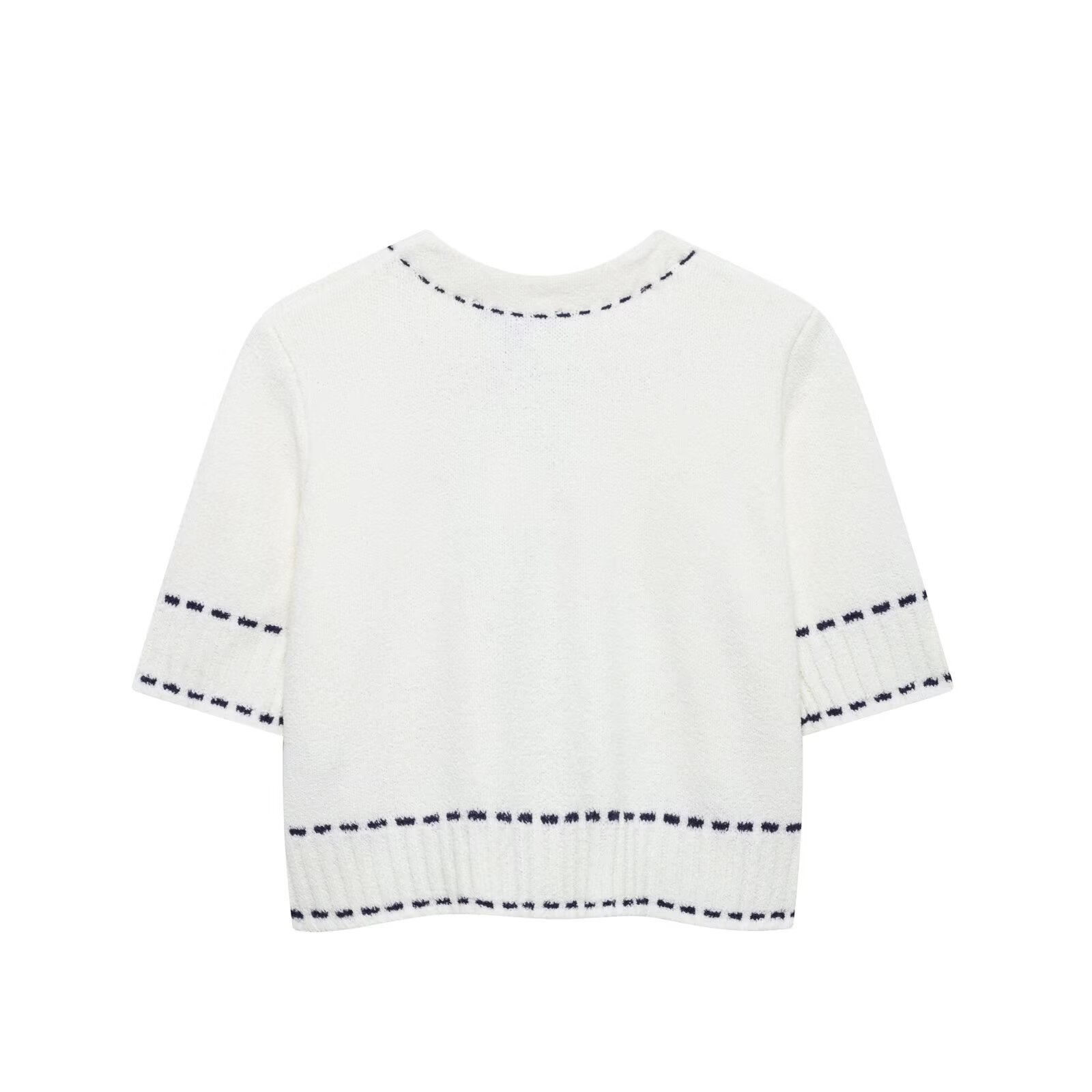 국경 간 새로운 여성 2025 유럽 및 미국 스타일 새로운 패션 트림 반팔 니트 카디건 짧은 자켓스토어 가기