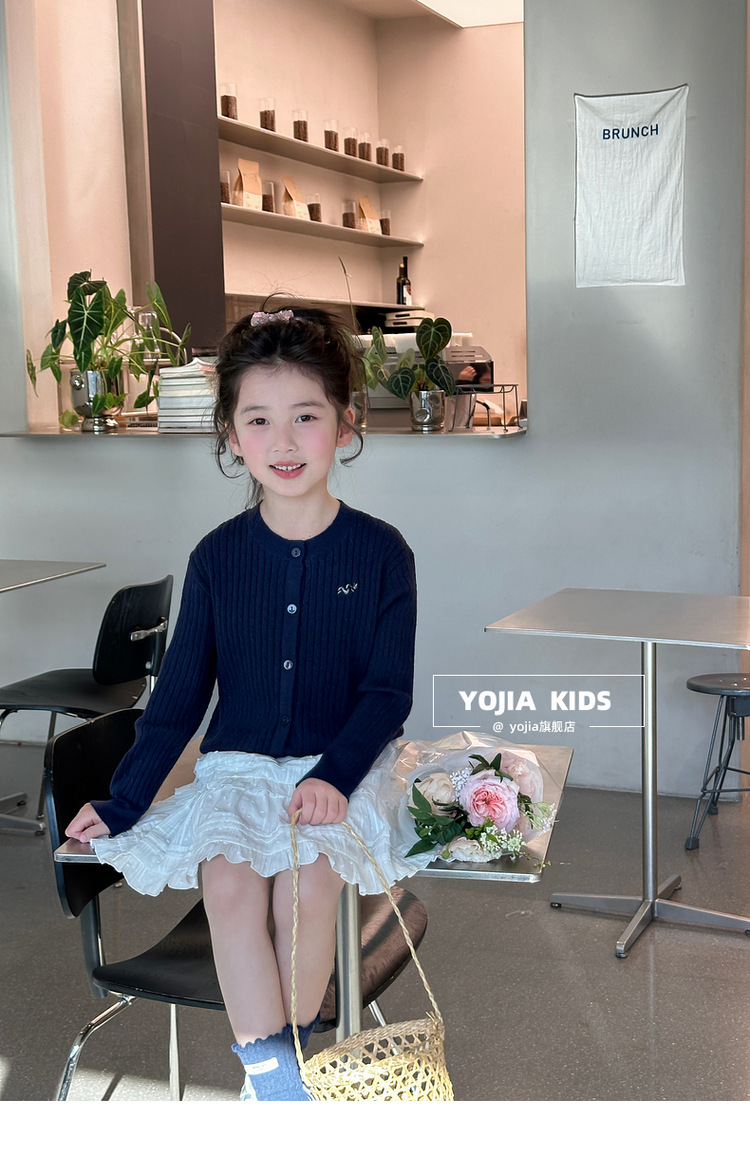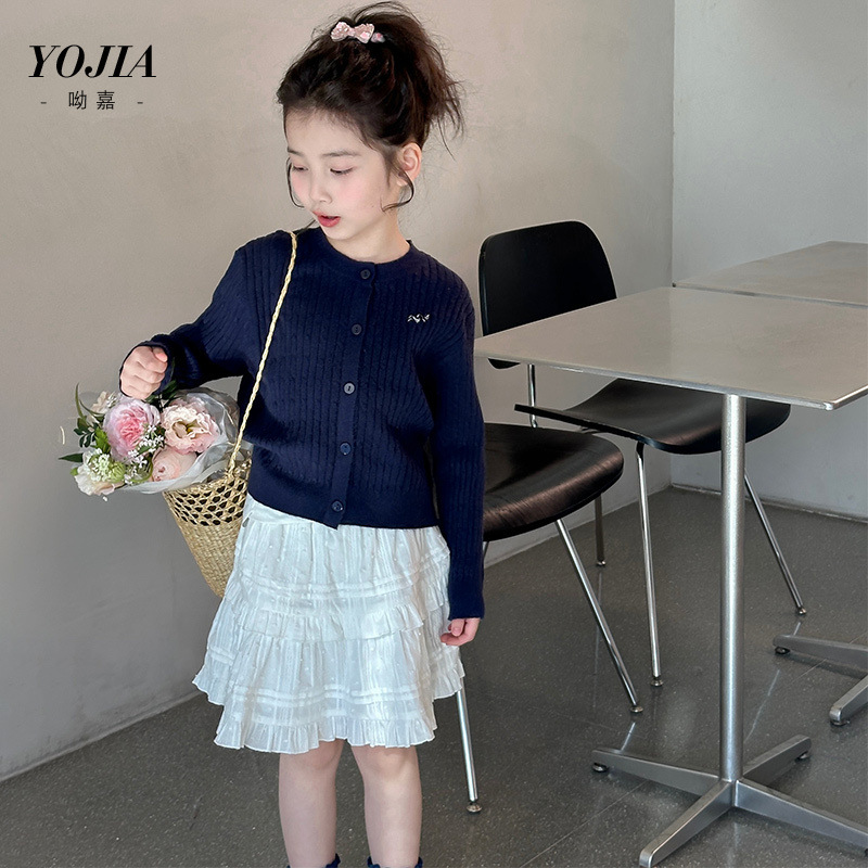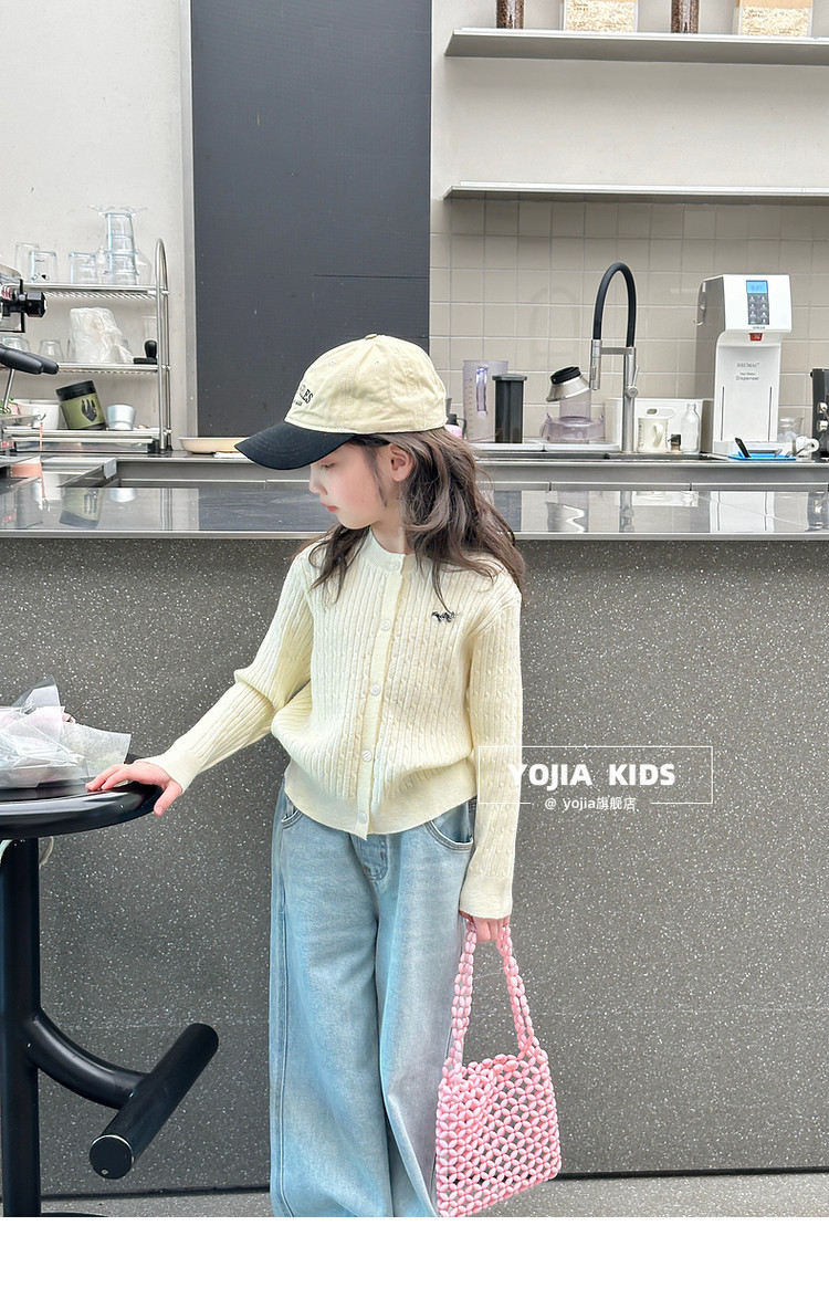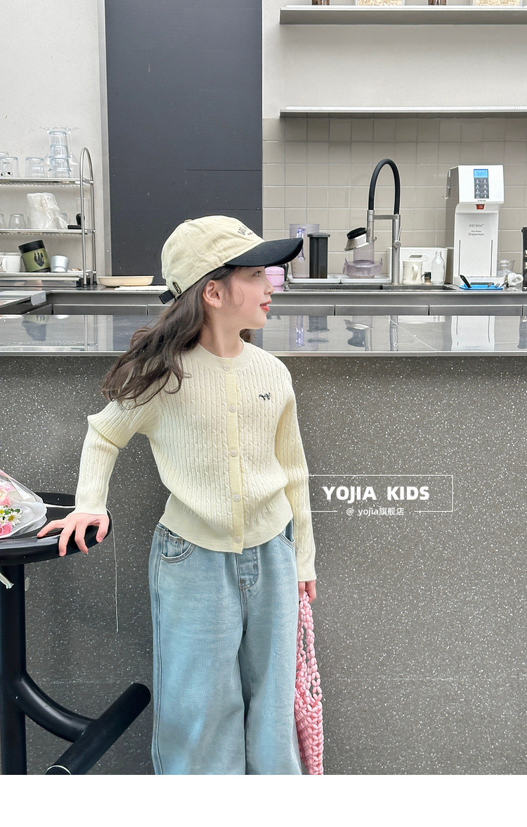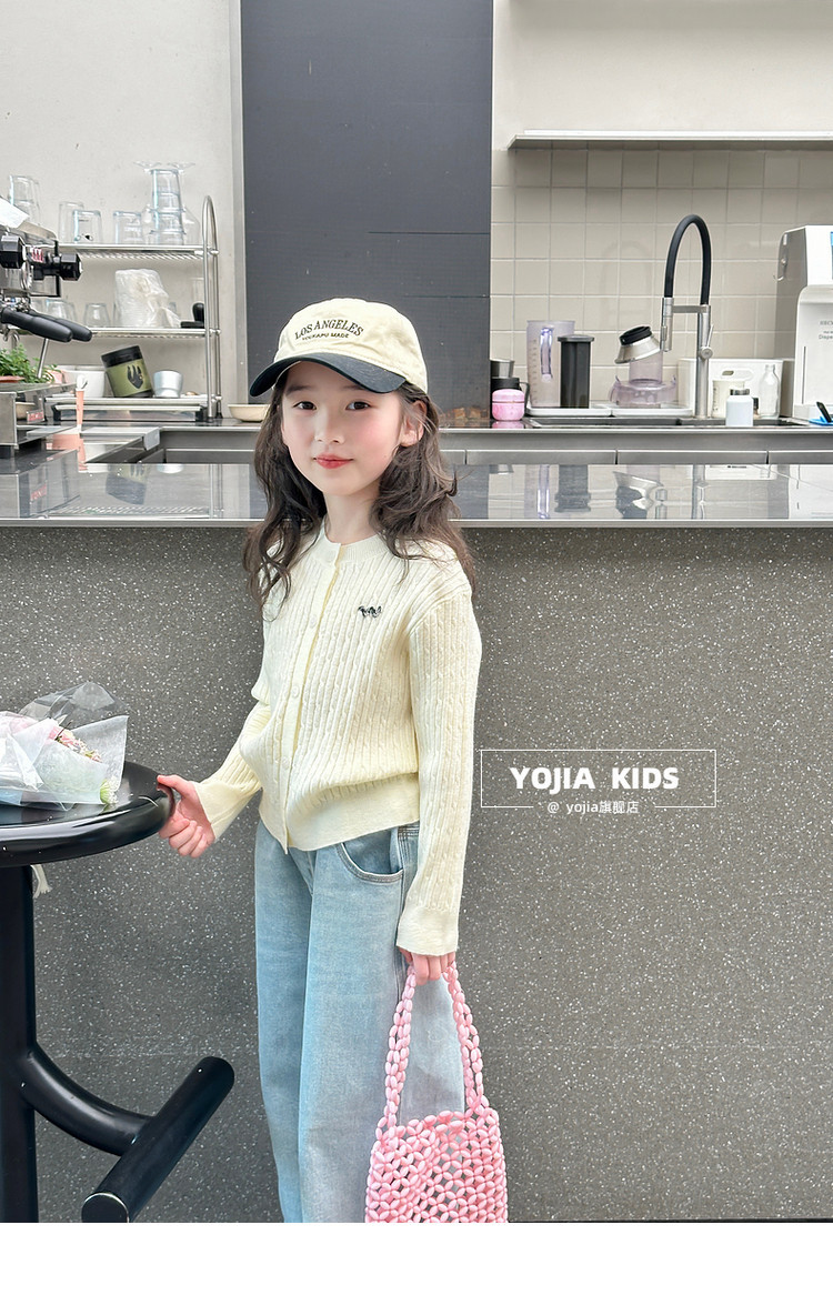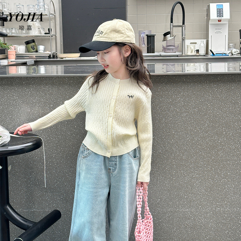 YOJIA 소녀의 니트 셔츠 봄 2025 새로운 스타일 유행 소녀 카디건 탑 어린이 스웨터 작은 셔츠스토어 가기