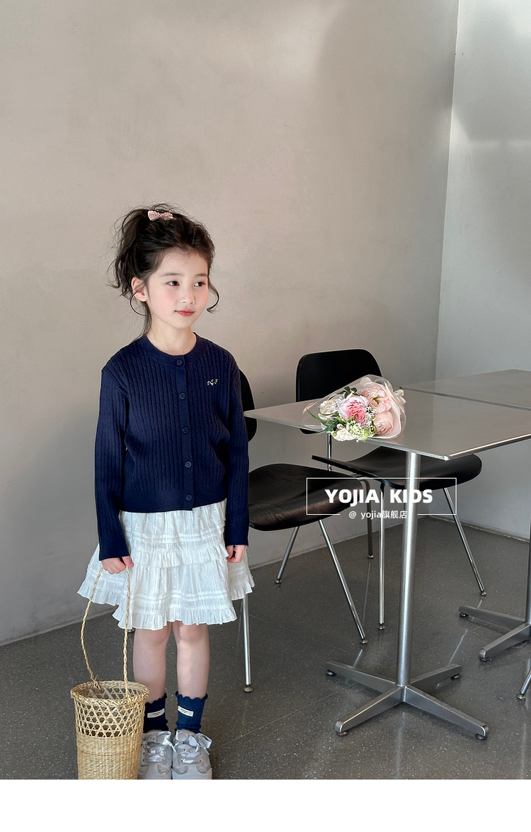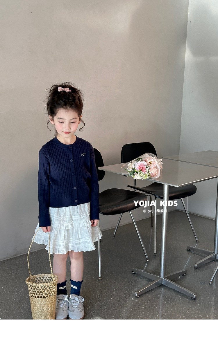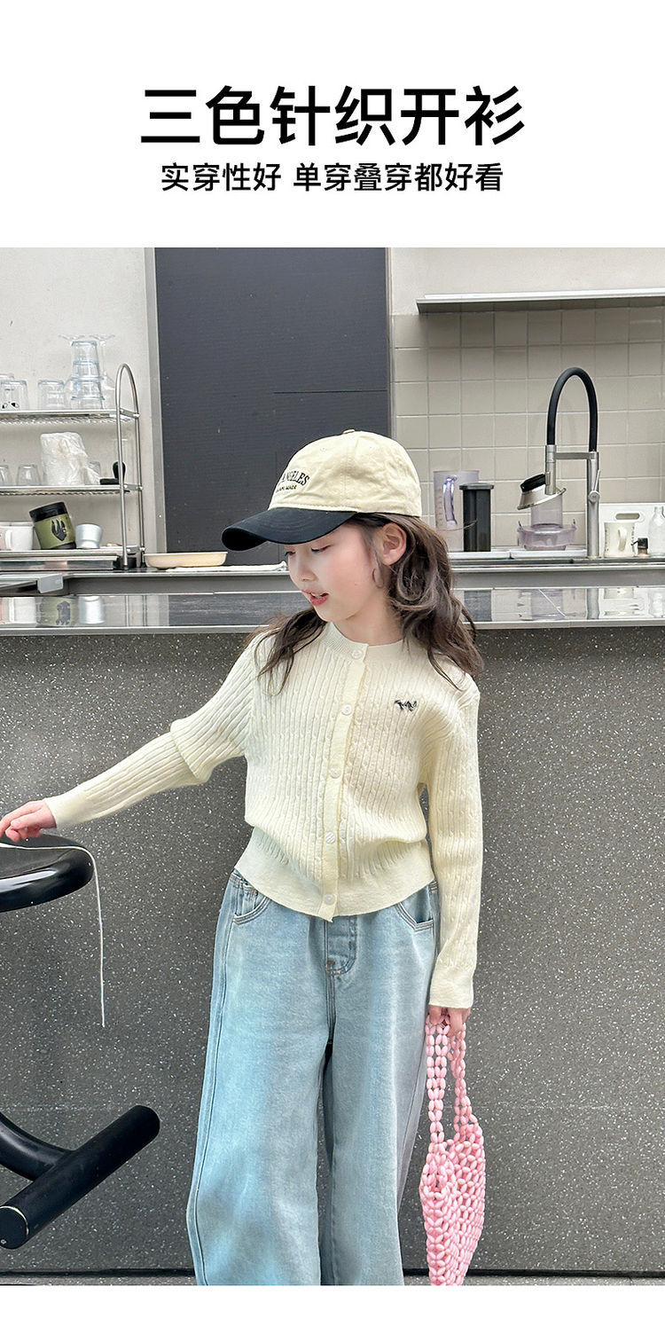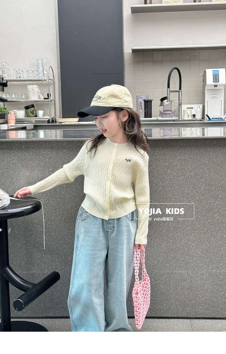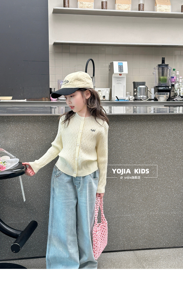 YOJIA 소녀의 니트 셔츠 봄 2025 새로운 스타일 유행 소녀 카디건 탑 어린이 스웨터 작은 셔츠스토어 가기