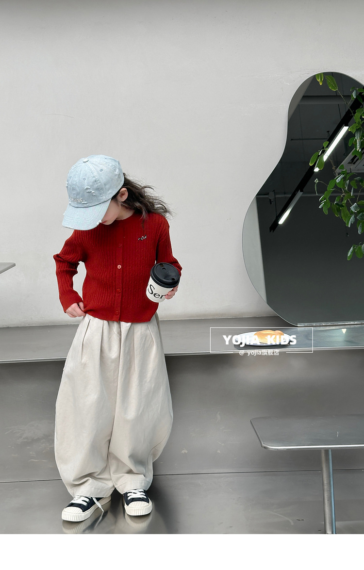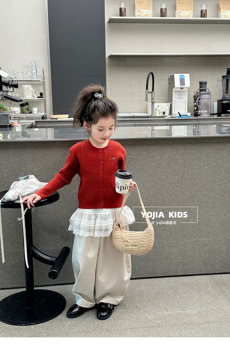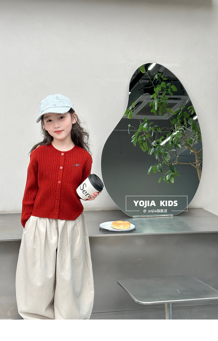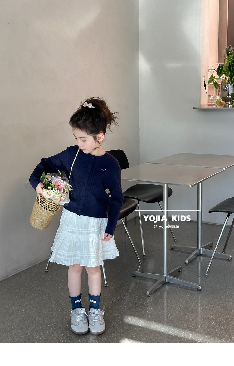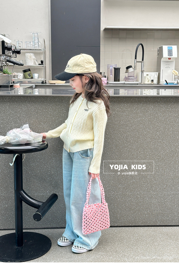 YOJIA 소녀의 니트 셔츠 봄 2025 새로운 스타일 유행 소녀 카디건 탑 어린이 스웨터 작은 셔츠스토어 가기