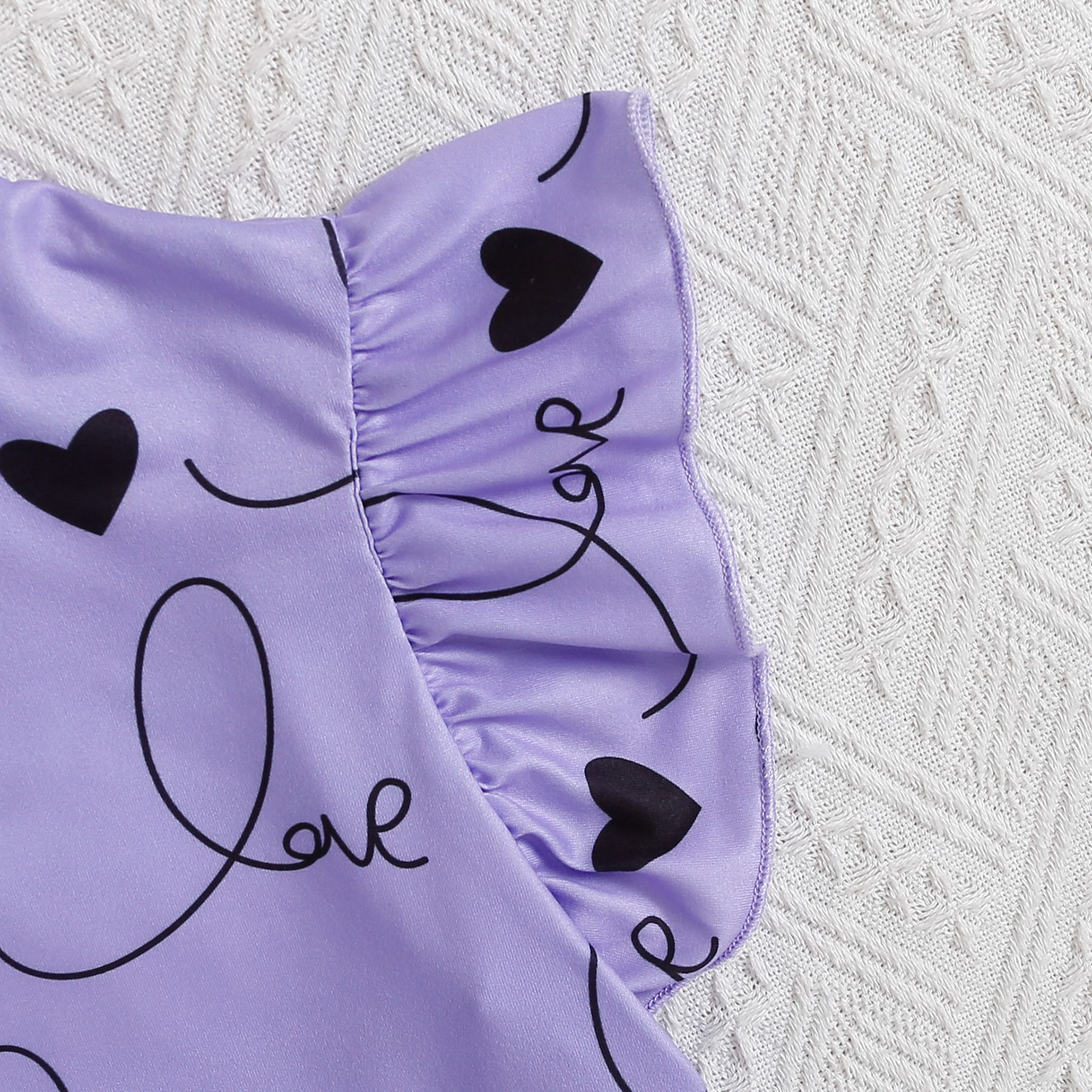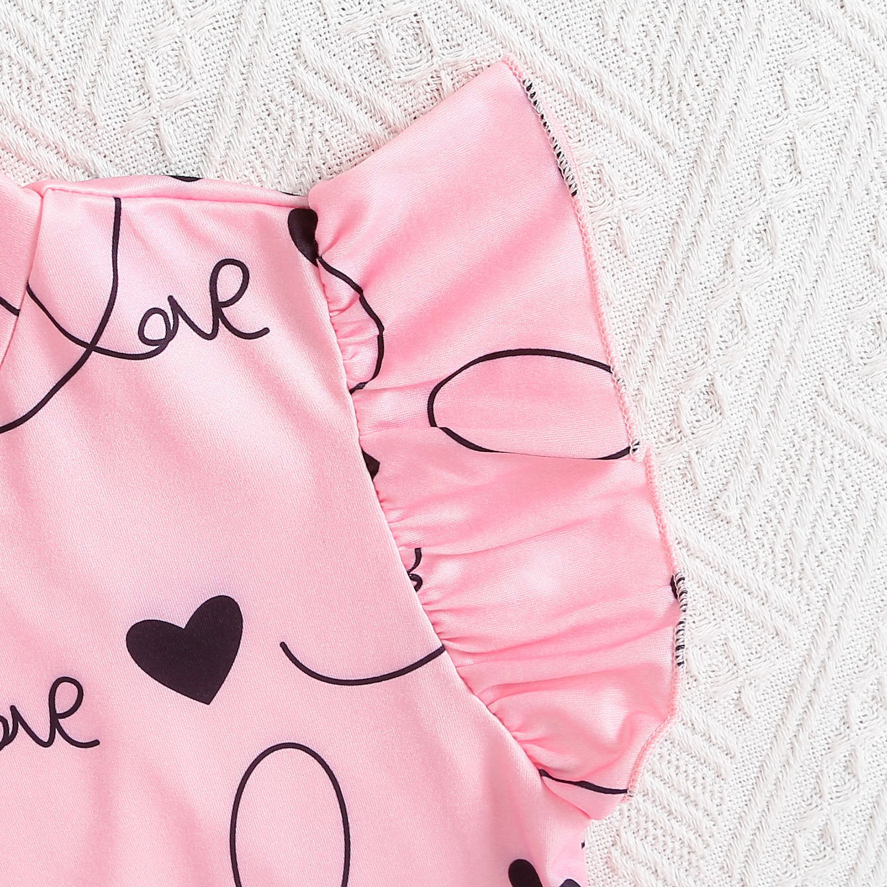 팔렌 시아 대외 무역 국경 소녀 8-12 세 높은 칼라 플라잉 슬리브 러브 프린트 티셔츠 탑 A 자형 스커트스토어 가기