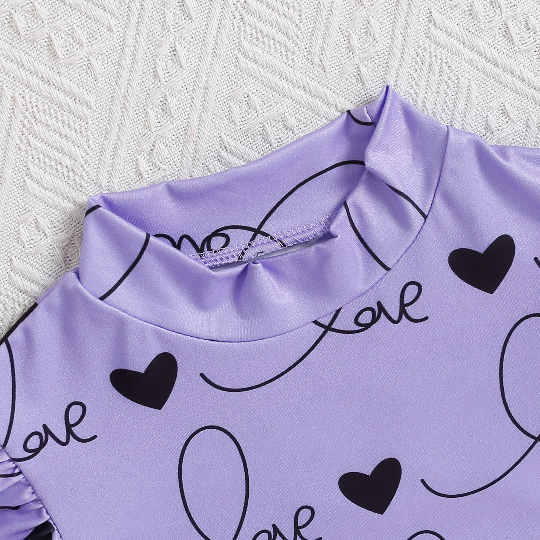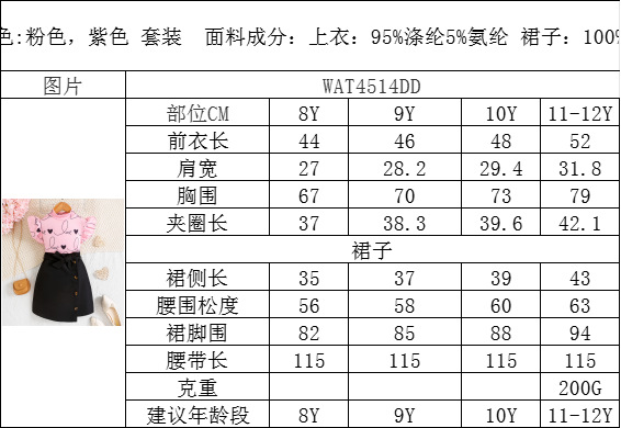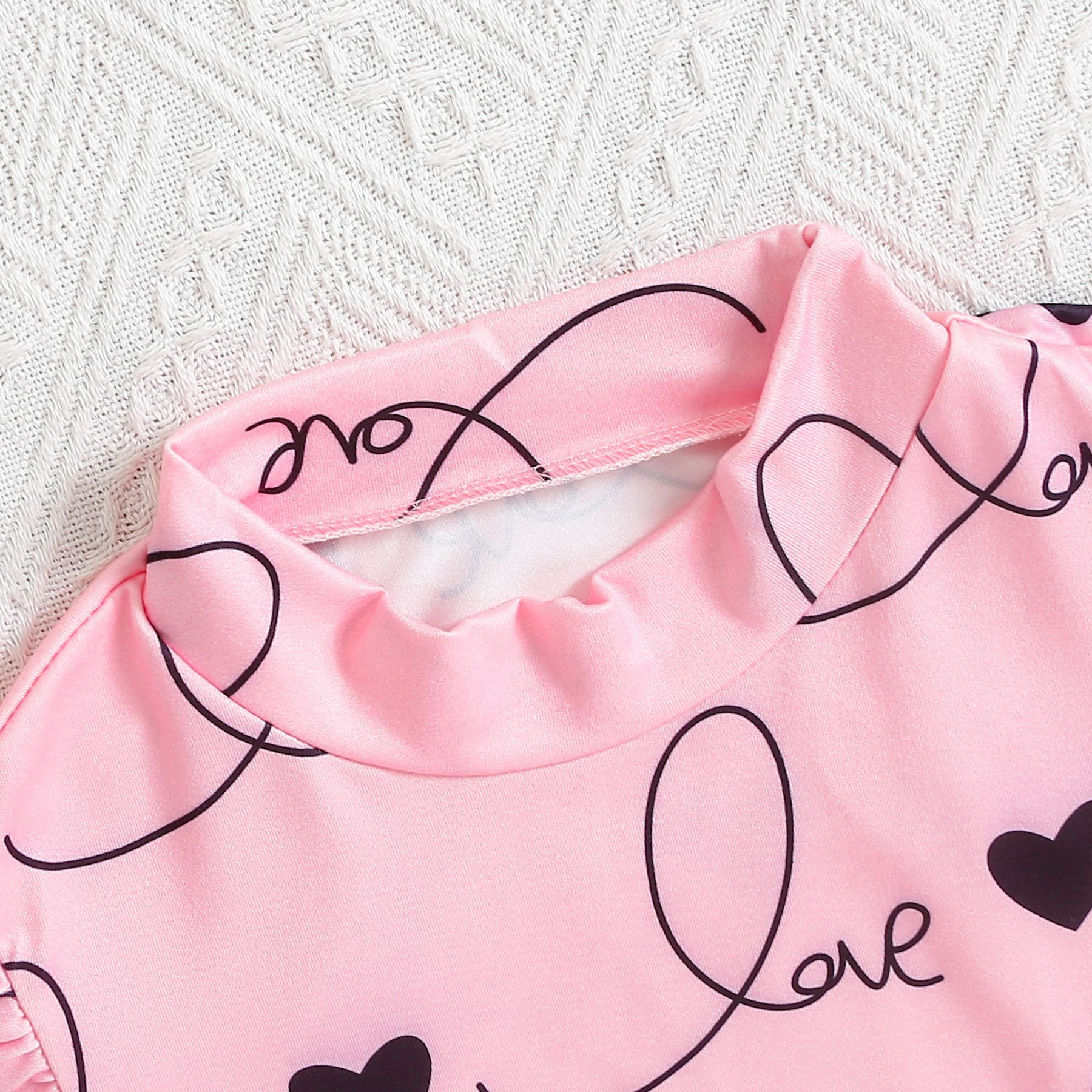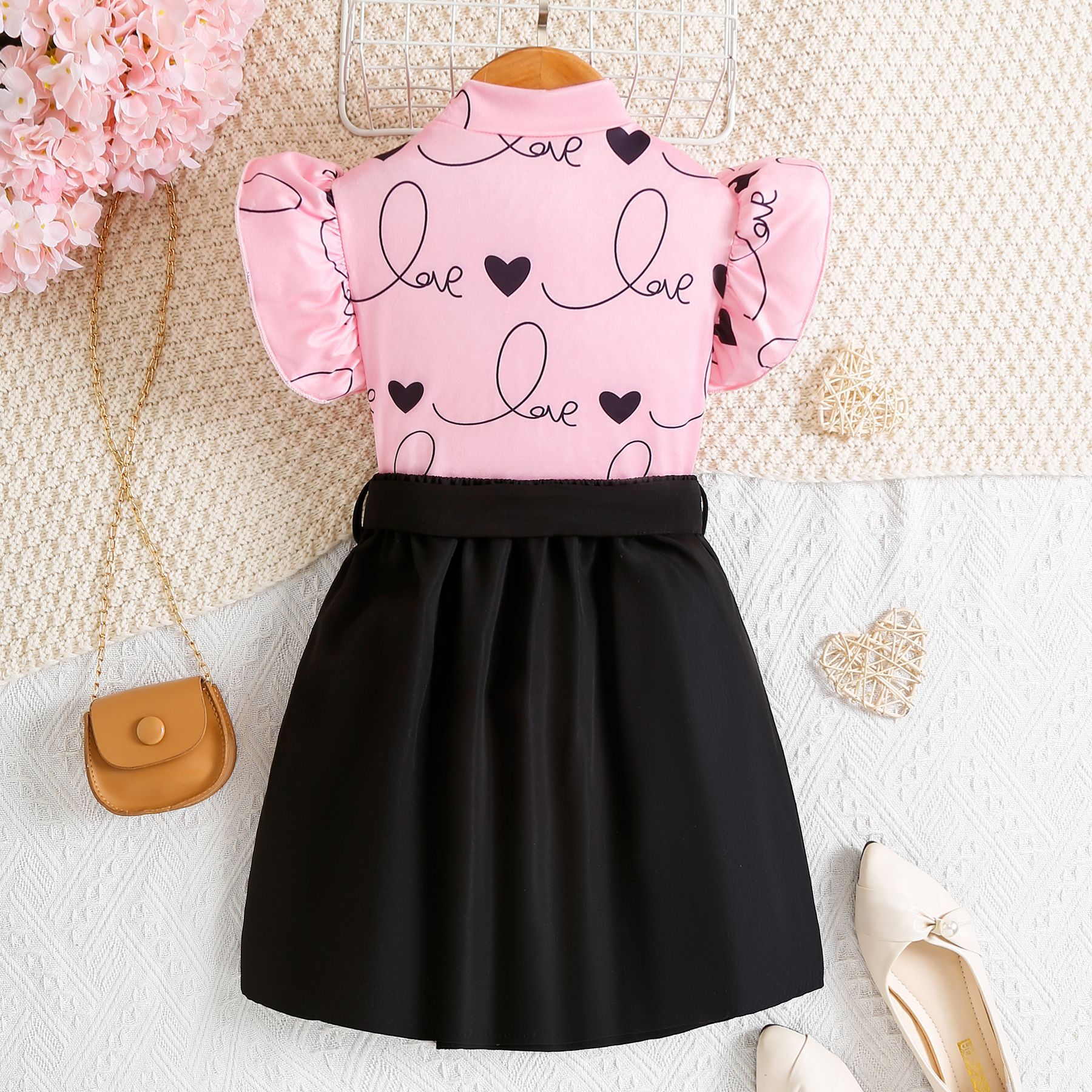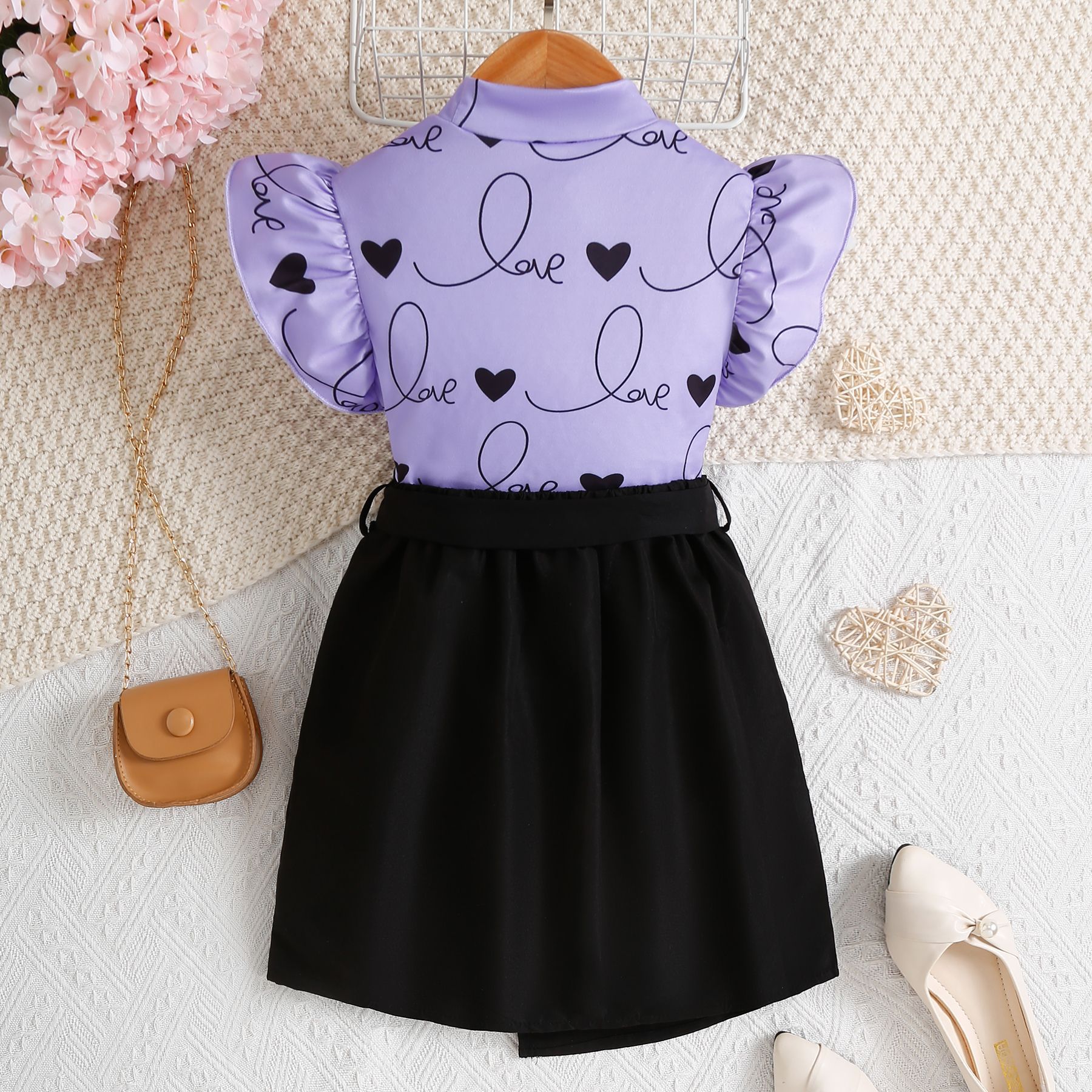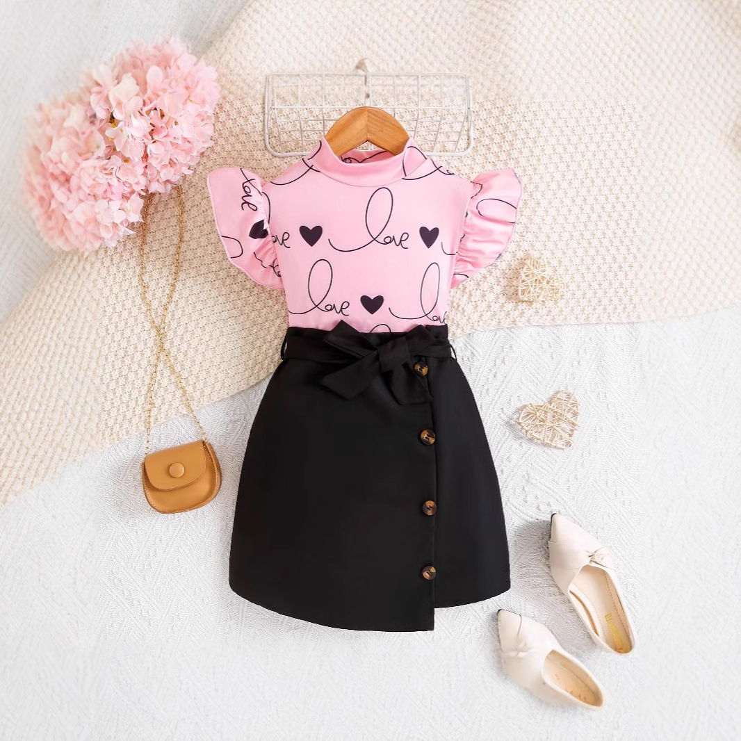 팔렌 시아 대외 무역 국경 소녀 8-12 세 높은 칼라 플라잉 슬리브 러브 프린트 티셔츠 탑 A 자형 스커트