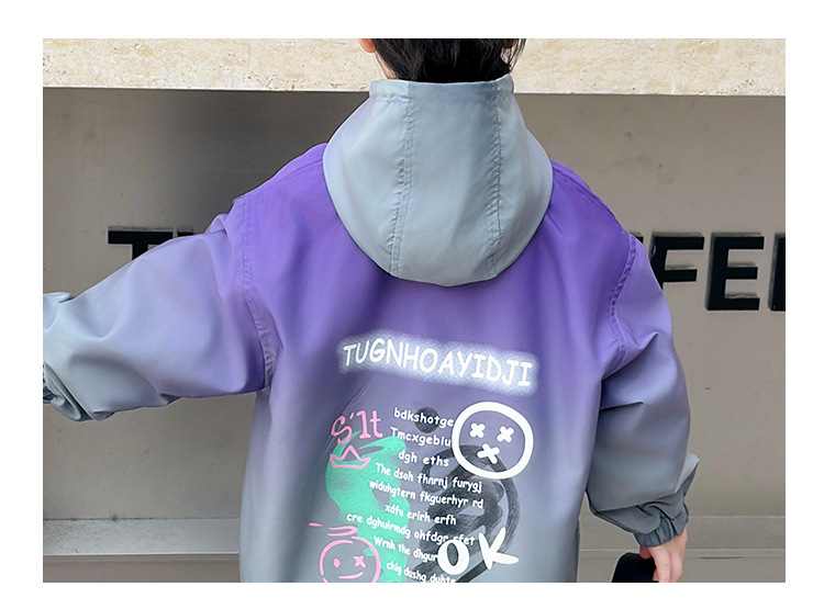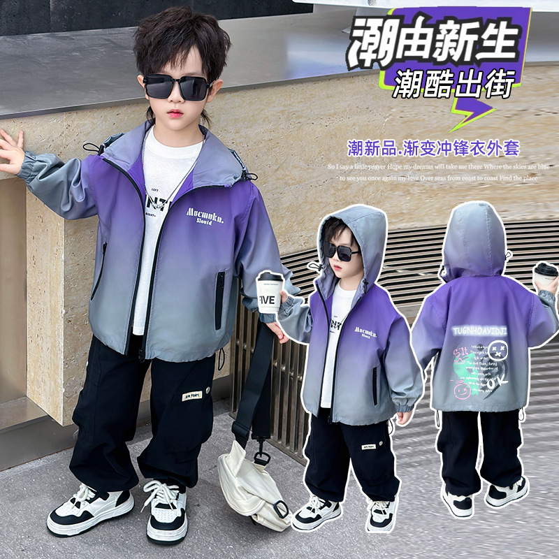 소년 코트 봄과 가을 2024 새로운 잘 생긴 어린이 충전 옷 그라디언트 프라이드 스트리트 베이비 코트 후드 탑스토어 가기