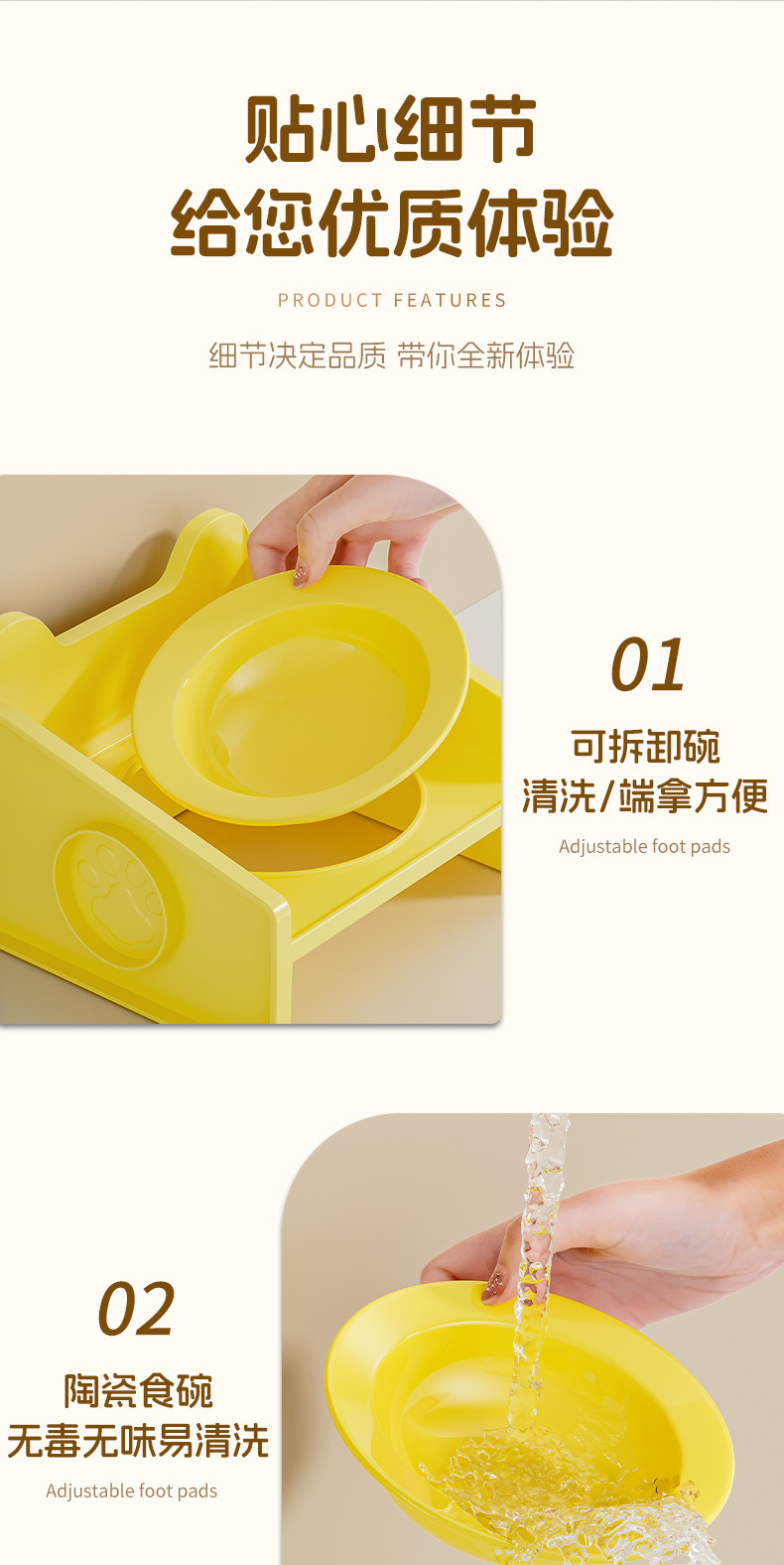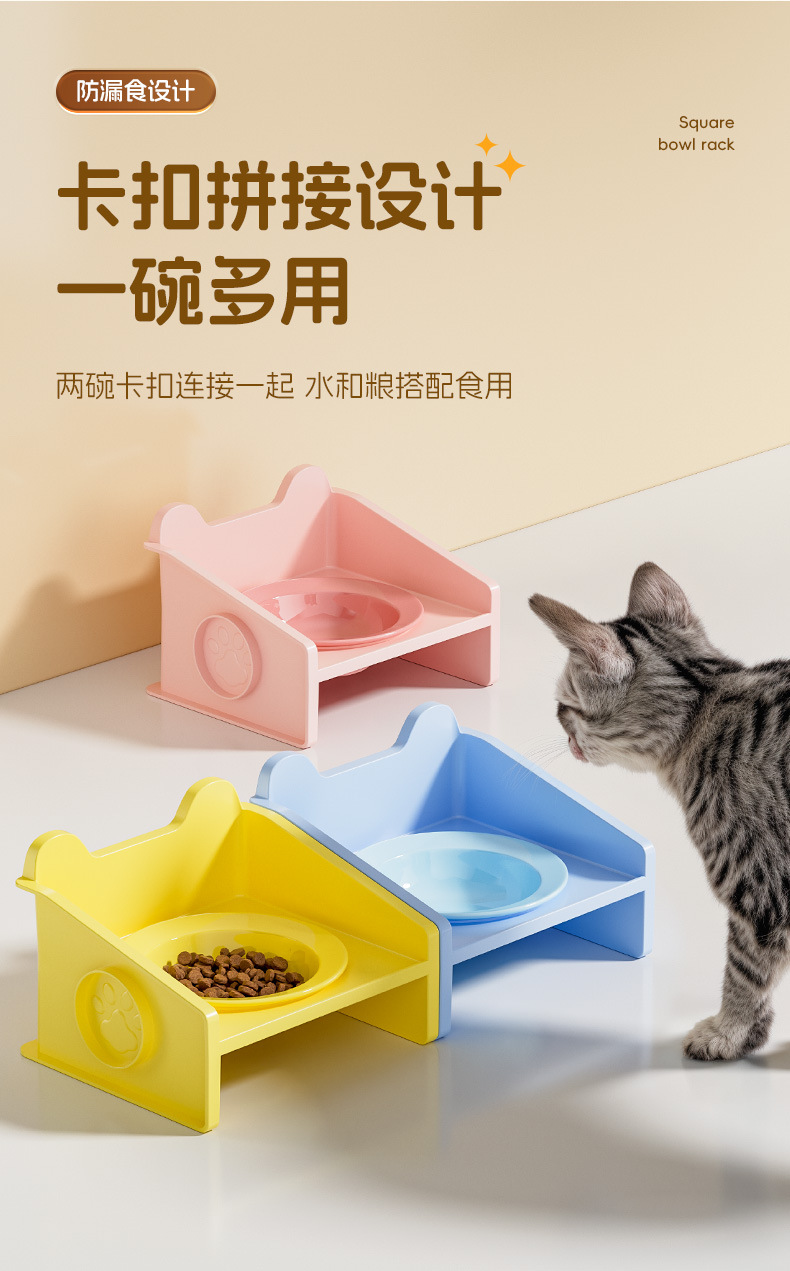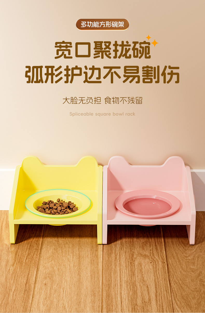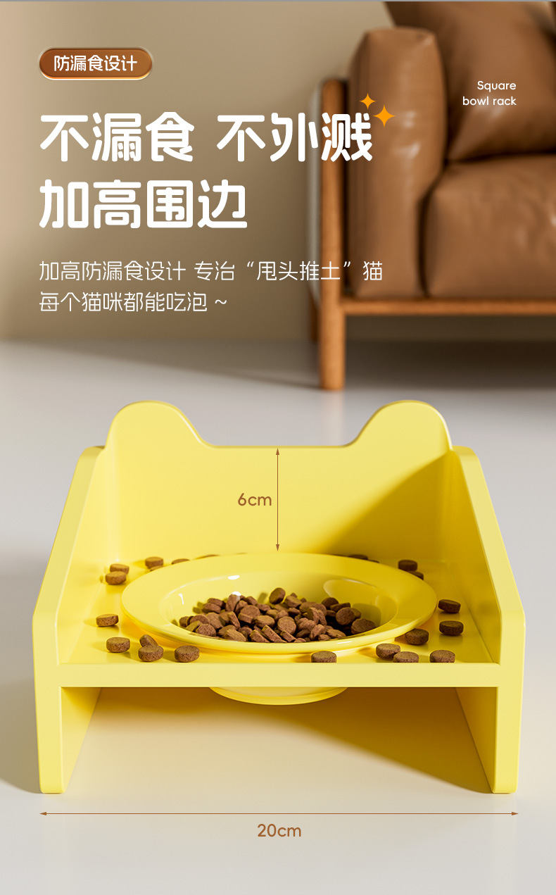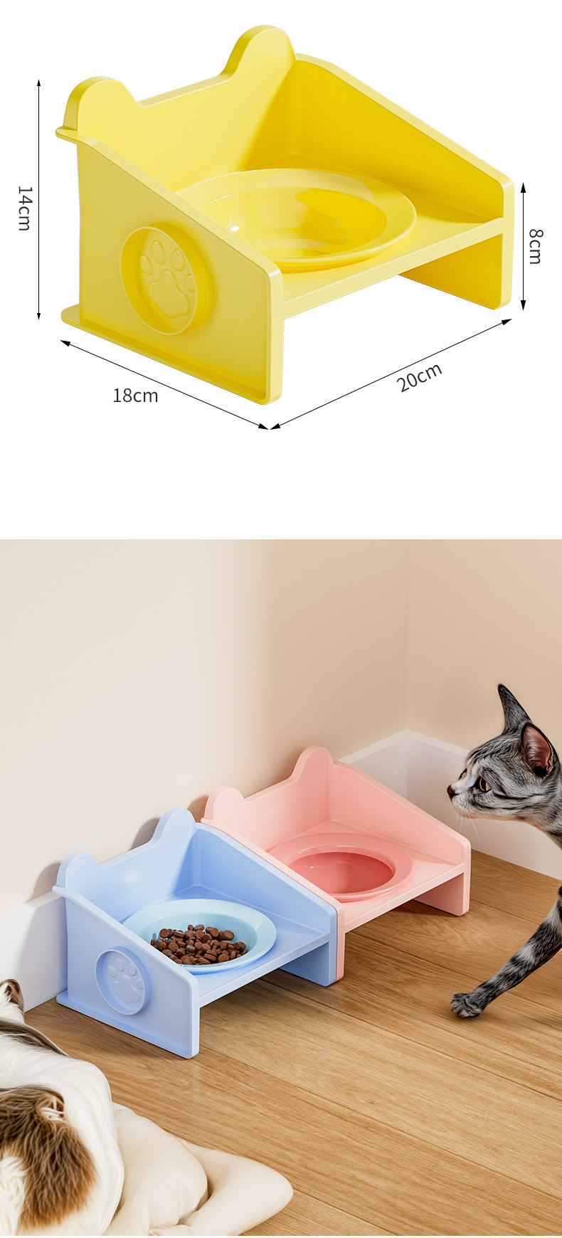 곰 비행 접시 그릇 랙 귀여운 애완 동물 그릇 랙 높은 목 보호 안티 노크 고양이 그릇 랙 개 그릇 세라믹 고양이 그릇 그릇스토어 가기