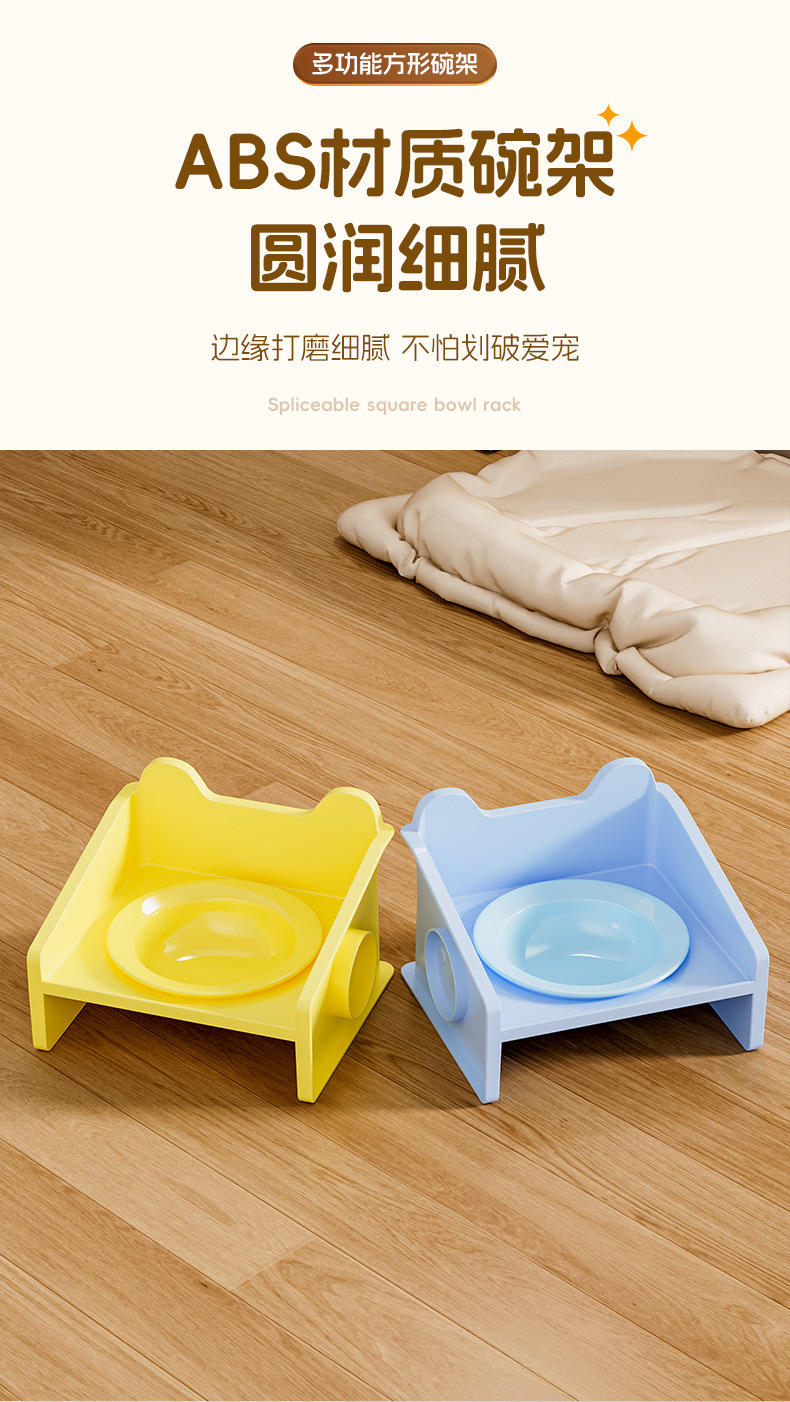 곰 비행 접시 그릇 랙 귀여운 애완 동물 그릇 랙 높은 목 보호 안티 노크 고양이 그릇 랙 개 그릇 세라믹 고양이 그릇 그릇