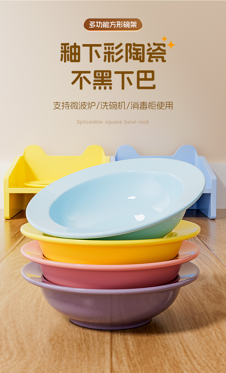 • 곰 보라색 사각 접시 랙 + 비행 접시 그릇