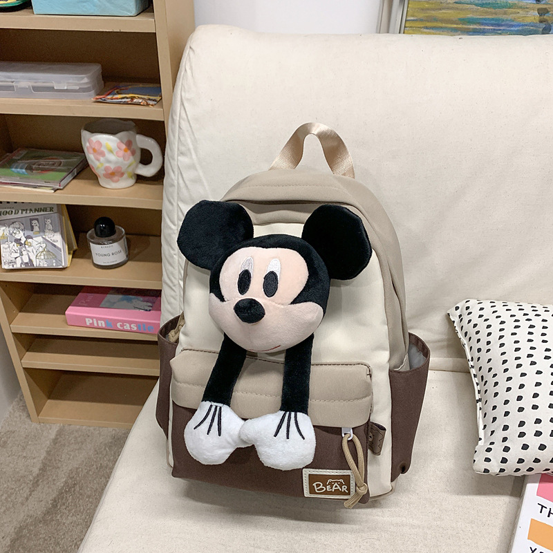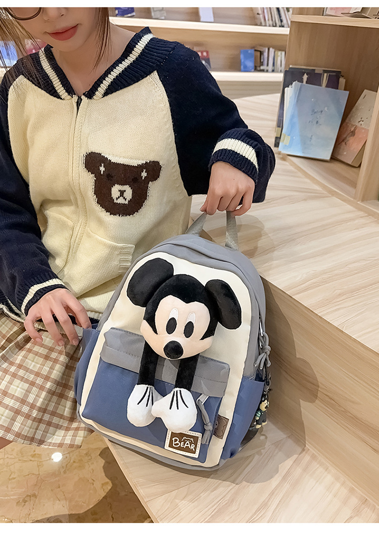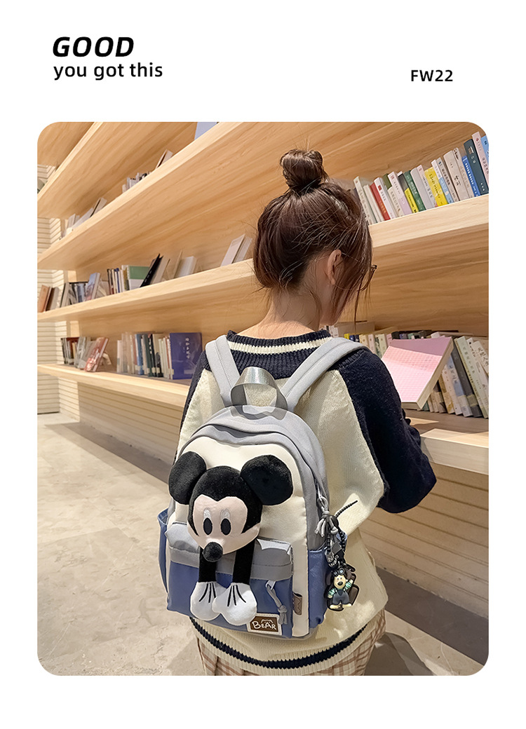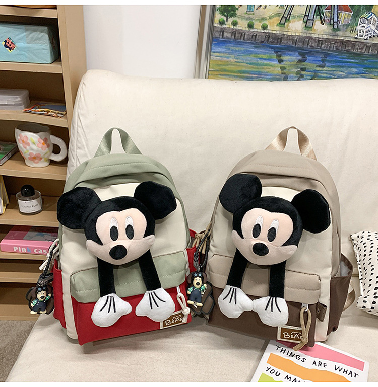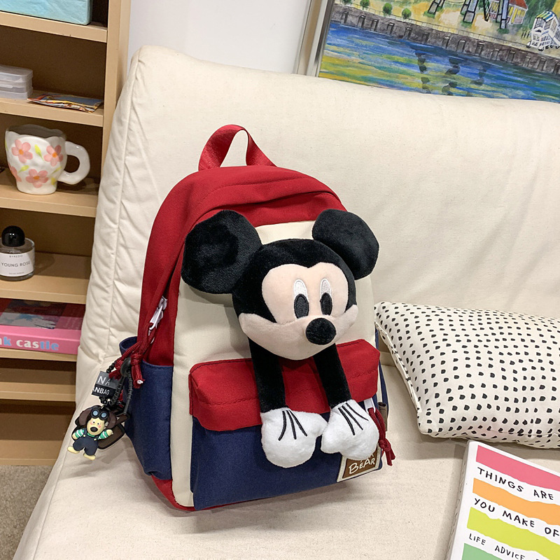 새로운 2024 만화 인형 어린이 배낭 귀여운 배낭 캐주얼 스쿨백 유치원 미키 배낭스토어 가기
