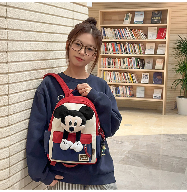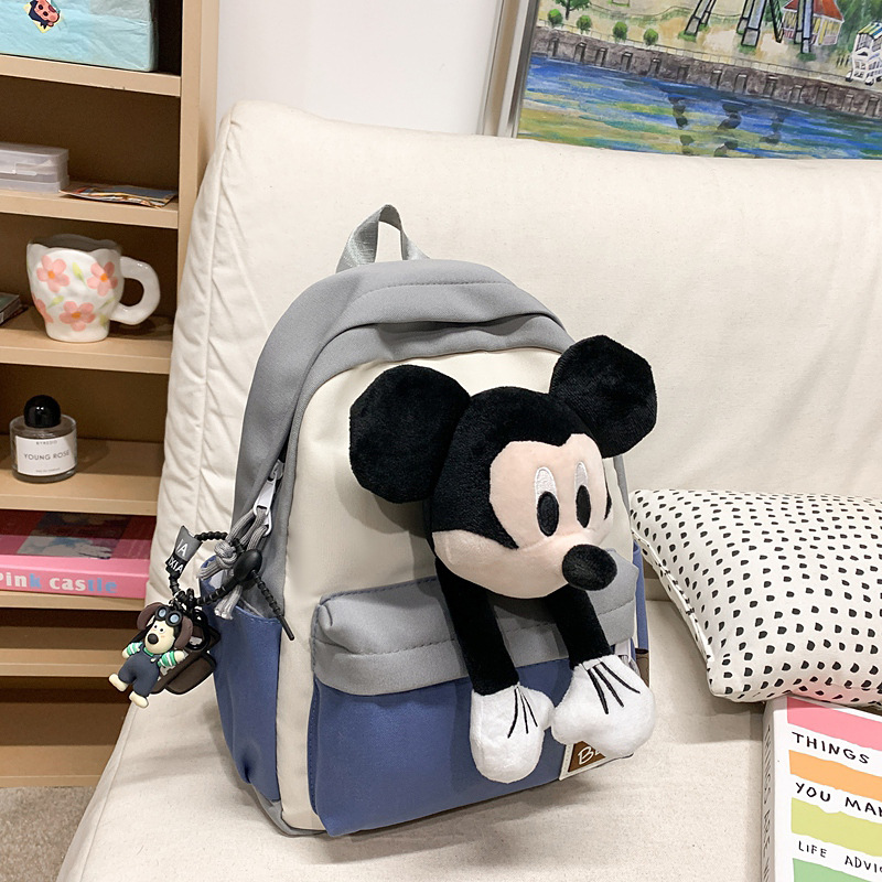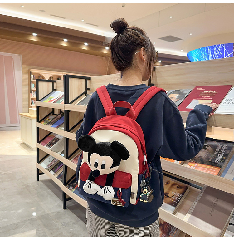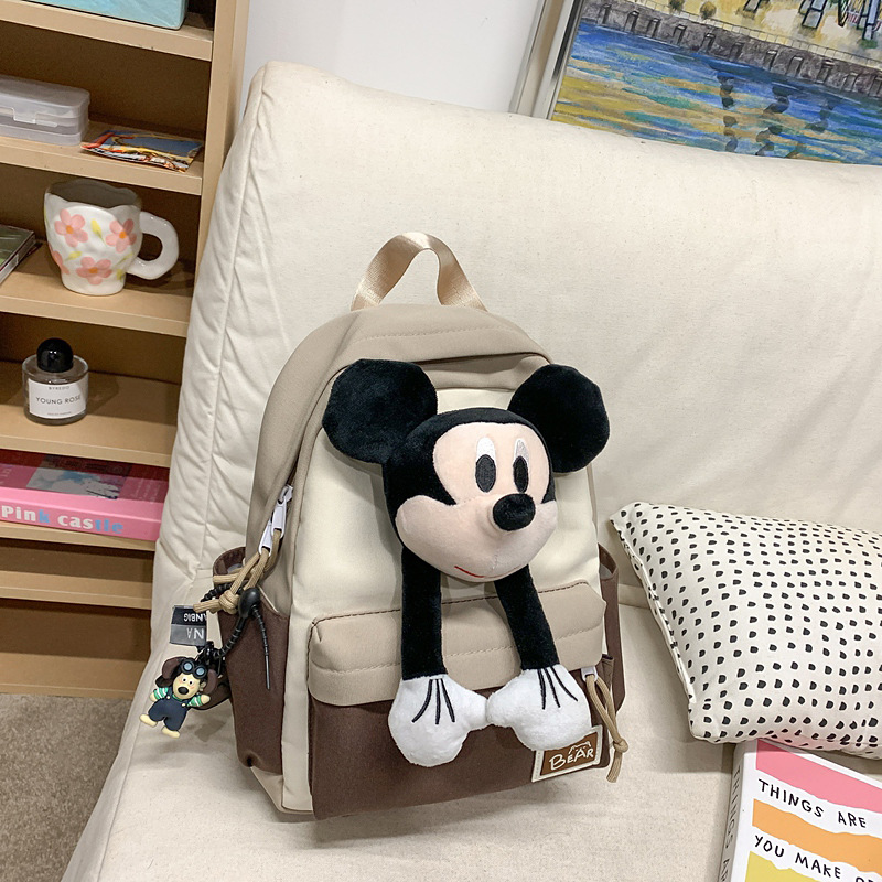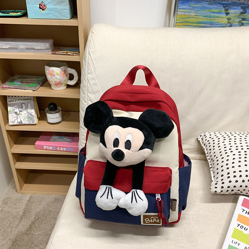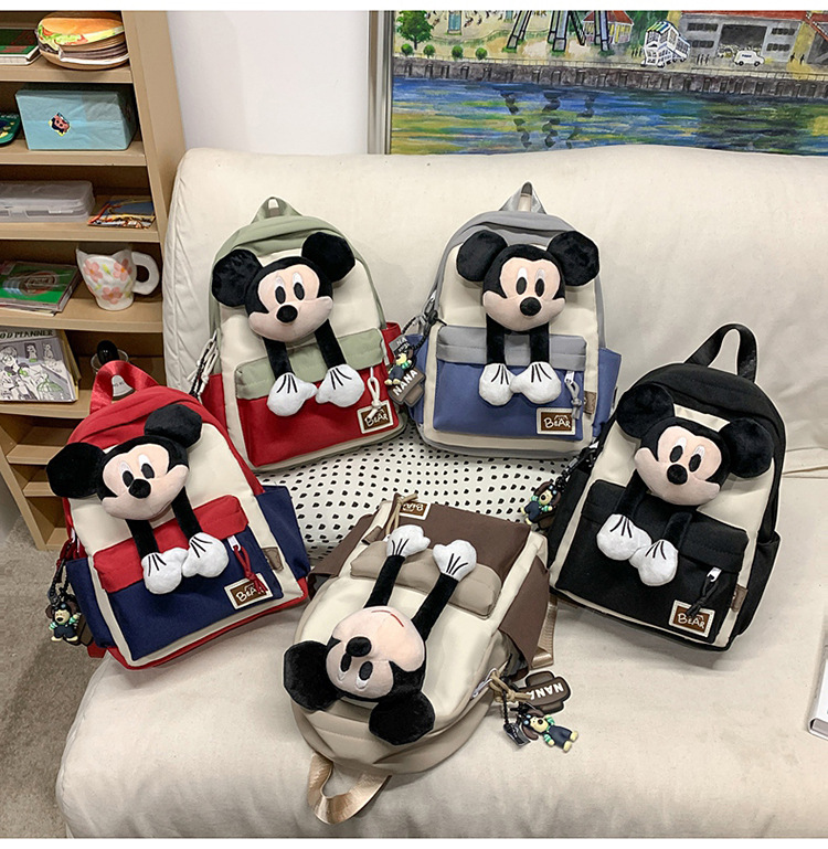 새로운 2024 만화 인형 어린이 배낭 귀여운 배낭 캐주얼 스쿨백 유치원 미키 배낭스토어 가기