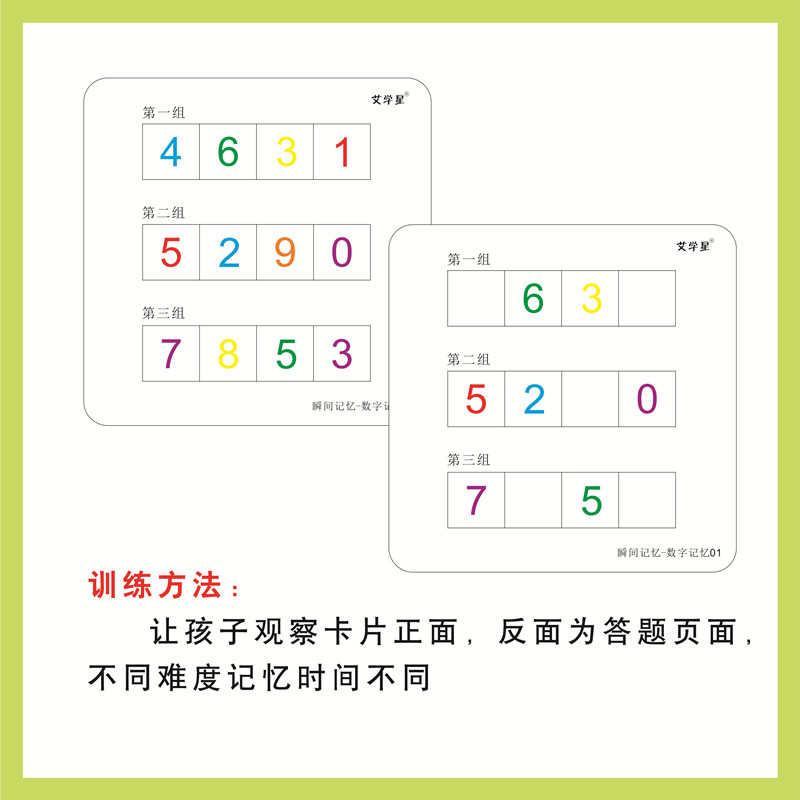 Ai Xuexing 어린이 순간 기억 훈련 전체 뇌 플래시 카드 디지털 컬러 컬러링 책, 집중, 관찰, 조기 교육 보조