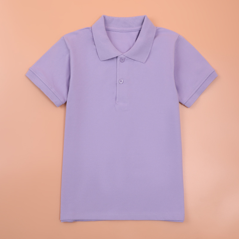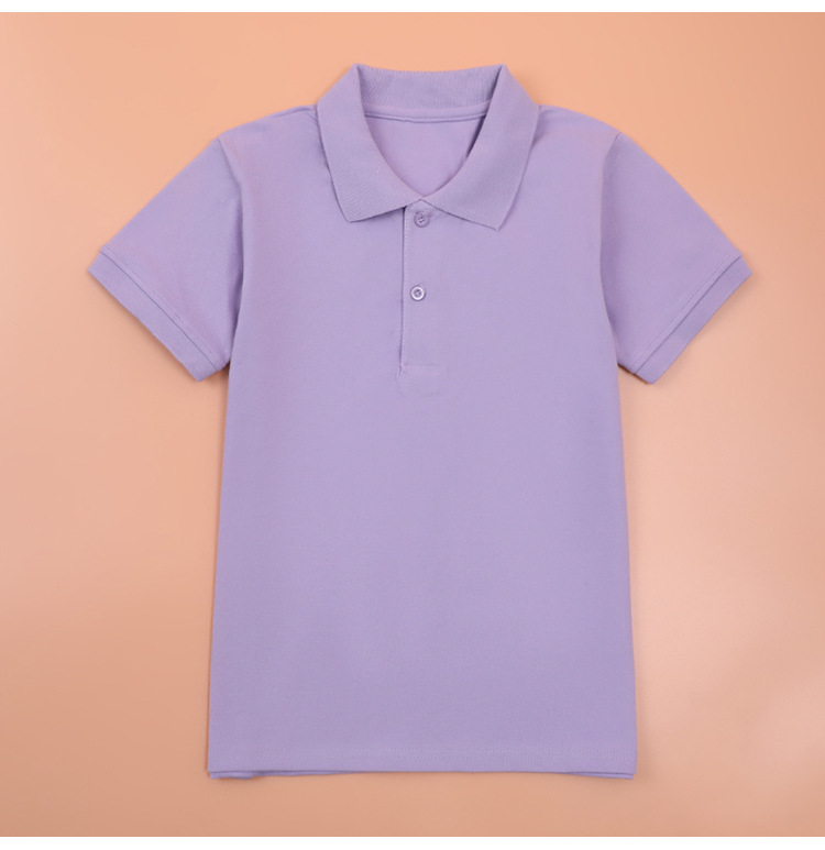 어린이 학교 유니폼 보라색 반팔 POLO 셔츠 소년과 소녀 블루 클래스 의류 정원 의류 면화 학교 유니폼 탑 초등 및 중등 학교 학생