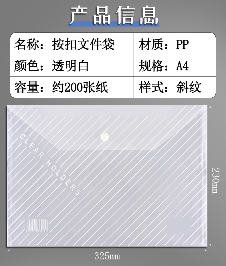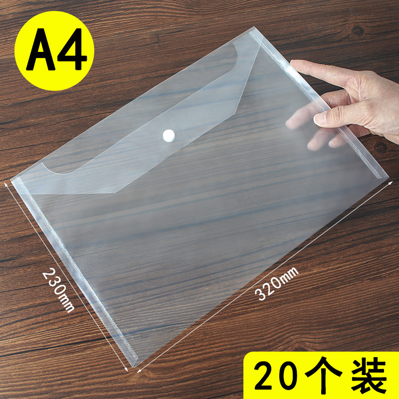 A4 종이 파일 가방 스냅 온 커버 정보 가방 흰색 투명 저장 가방 버튼 폴더 삽입 부드럽고 큰스토어 가기