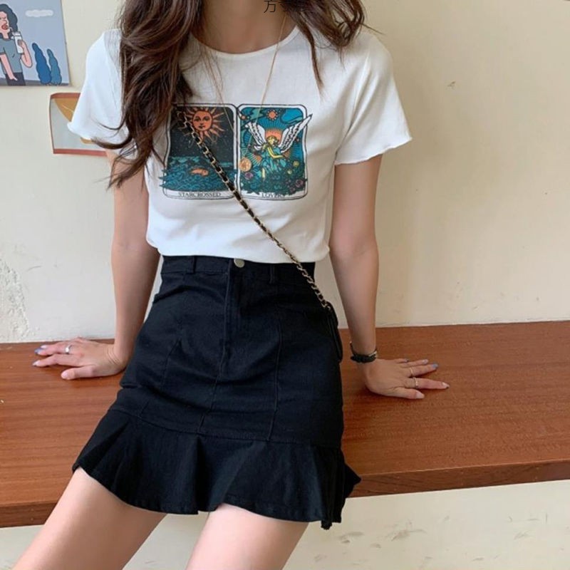 2024 봄 높은 허리 스커트 블랙 러플 스커트 학생 스커트 한국 단어 랩 힙합 스커트 안티 라이트 공장스토어 가기