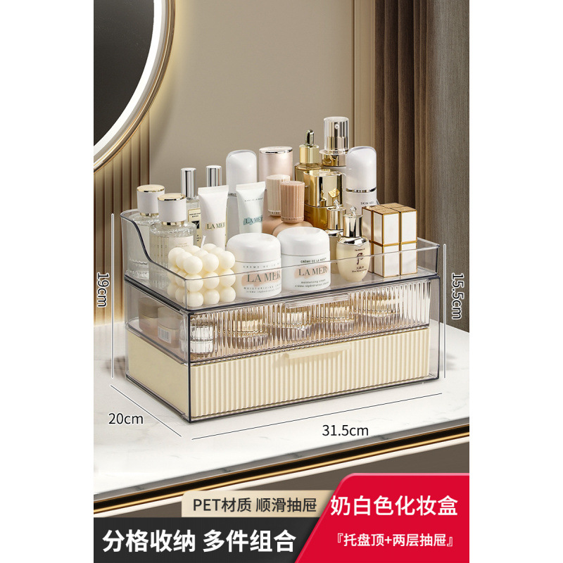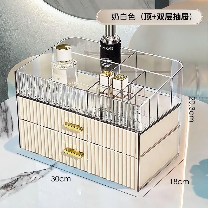 • ins 스타일 밀키 화이트/2층 멀티 그리드 파티션 메이크업 박스
