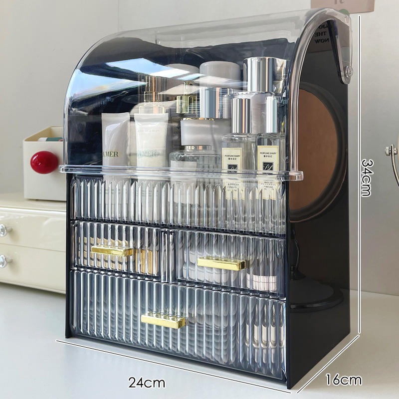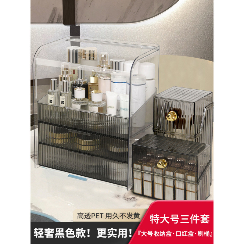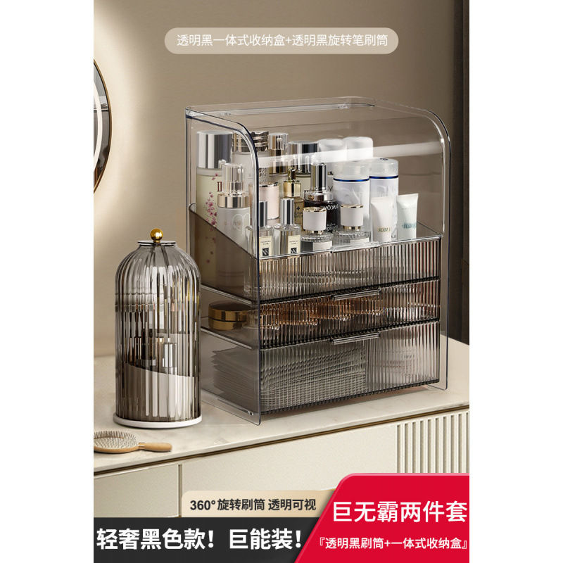 • ❤[작은고구마 추천! 블랙투명 3단] 방진 대용량 화장품 보관함