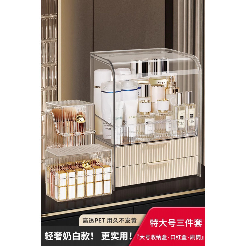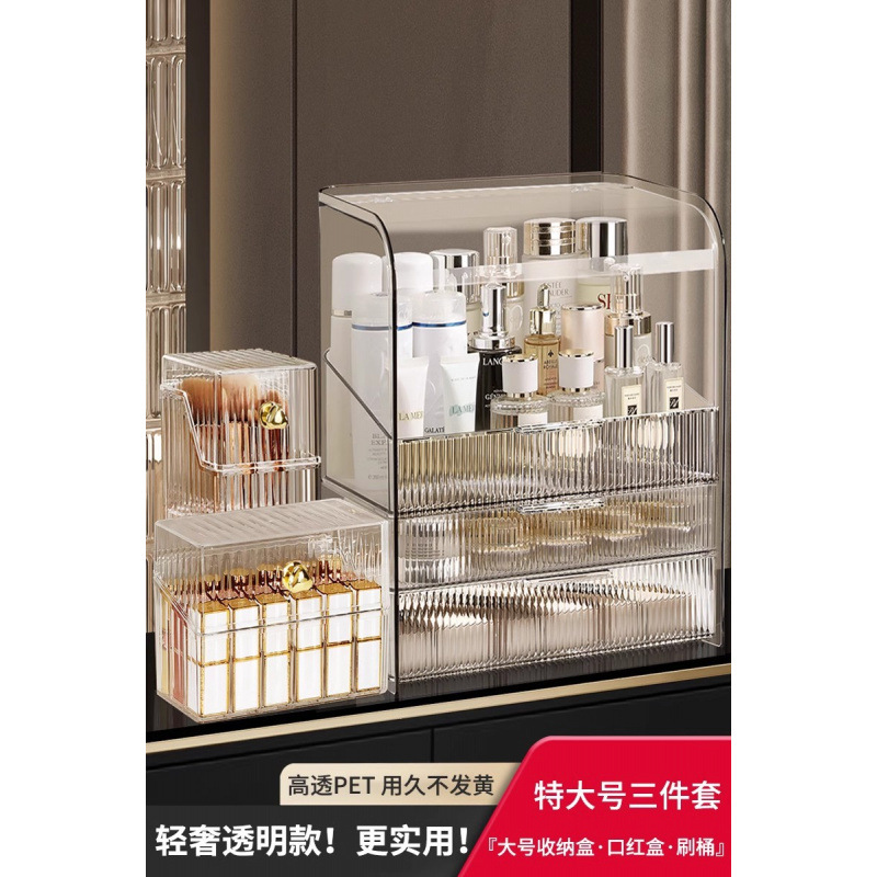 • [특대형 투명 3종세트] 메이크업 박스 + 라이트 럭셔리 브러쉬통 + 라이트 럭셔리 립스틱 박스