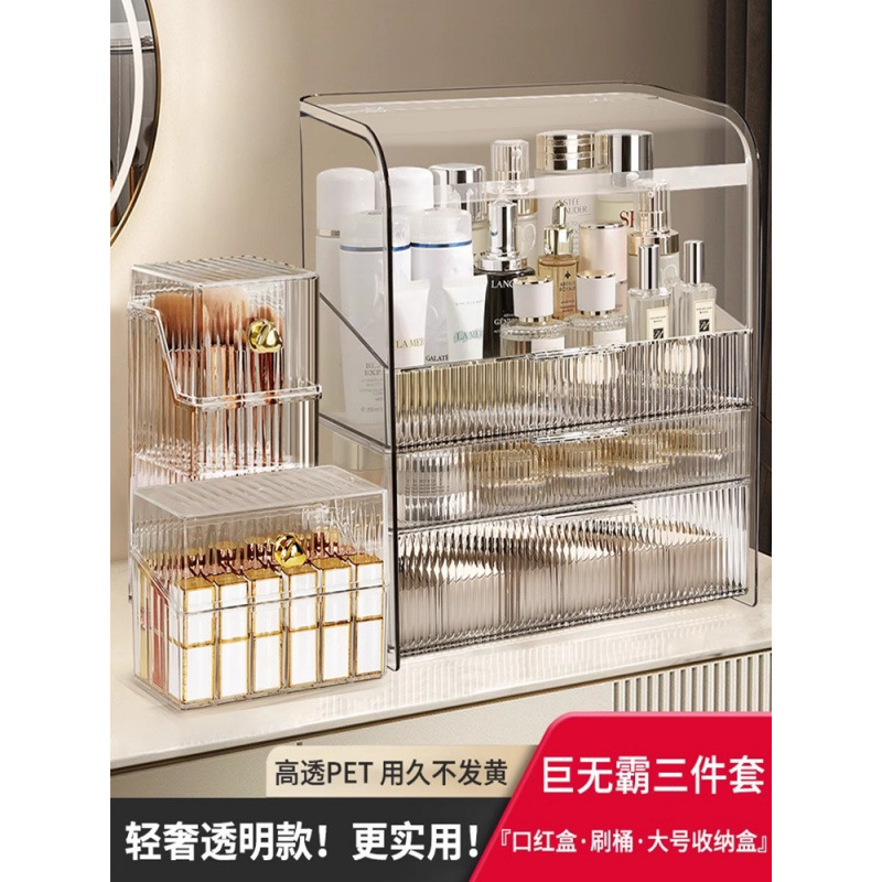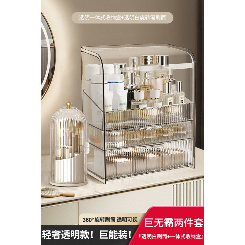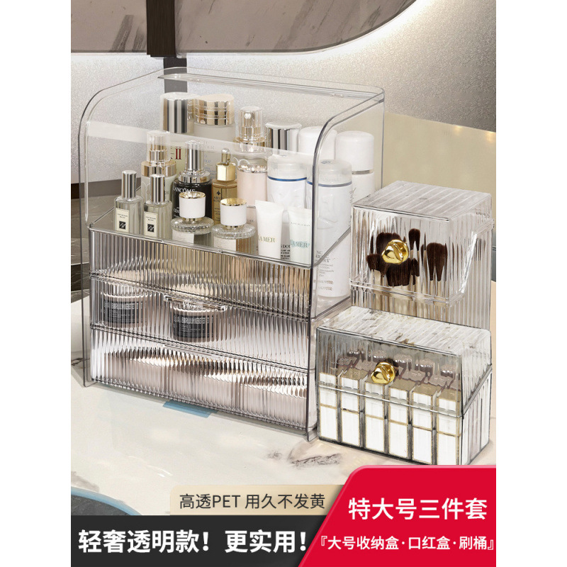 • [라이트 럭셔리 워터 리플 대형 3종 세트] 방진 투명 방진 상판 + 단층 서랍*2