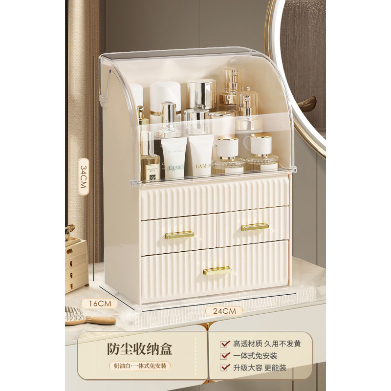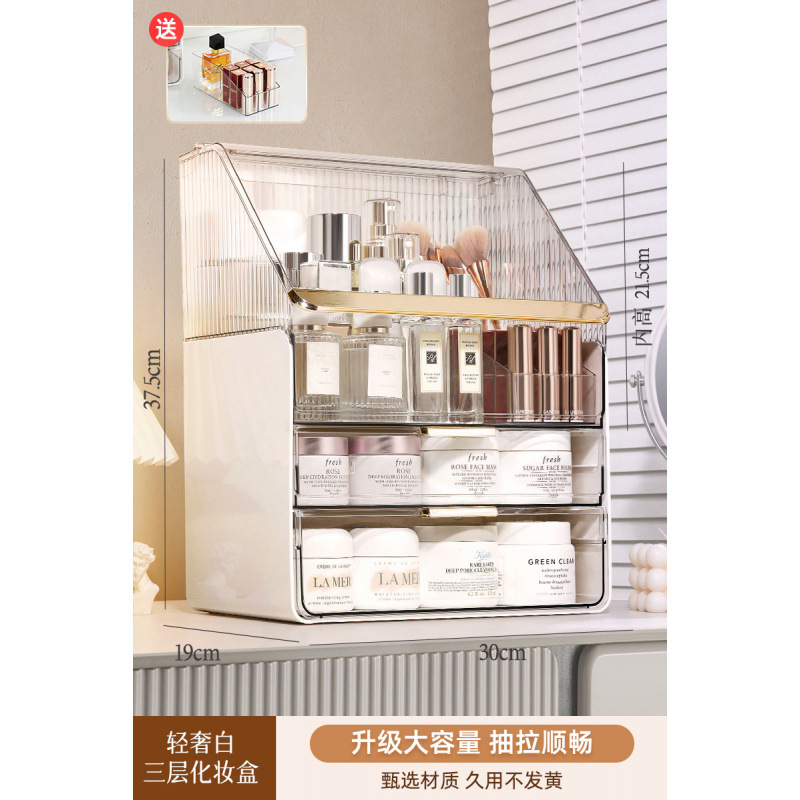 • ❤[작은고구마 추천! 밀키화이트 3단] 방진 대용량 화장품 보관함