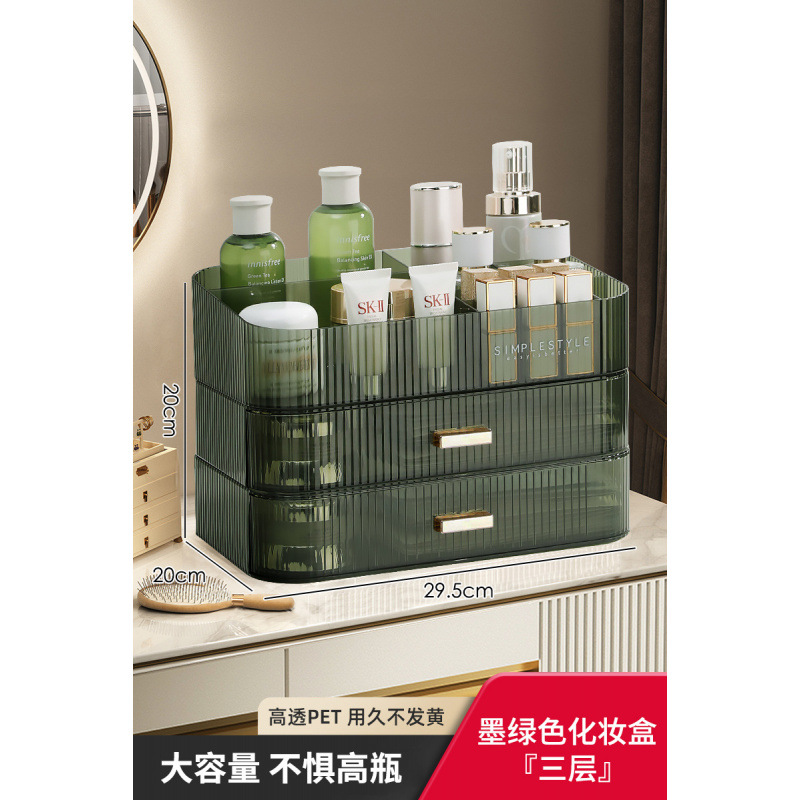 • 그린 3레이어/멀티 그리드 파티션 수납 화장품 상자