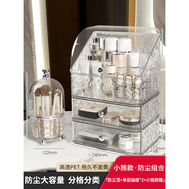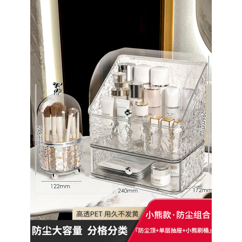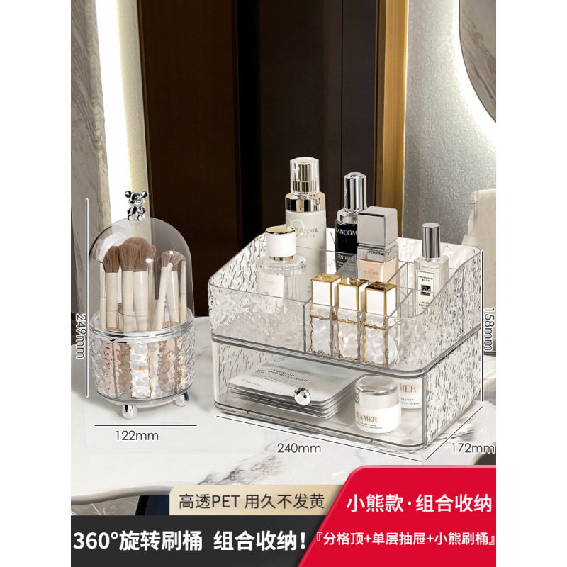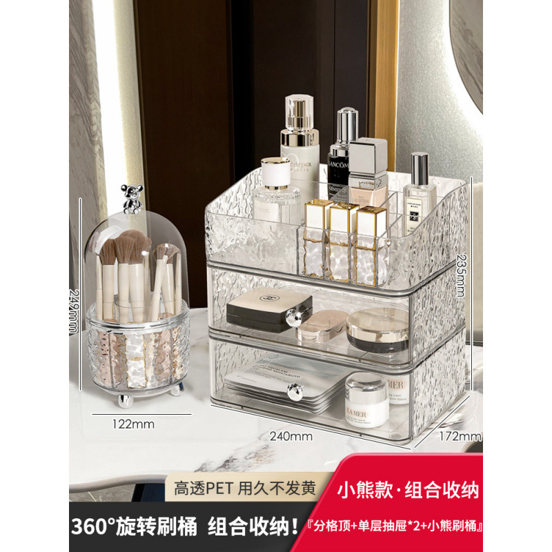 • [라이트 럭셔리 워터 리플 라지 3종 세트] 투명 분할 상판 + 단층 서랍 + 곰 브러쉬