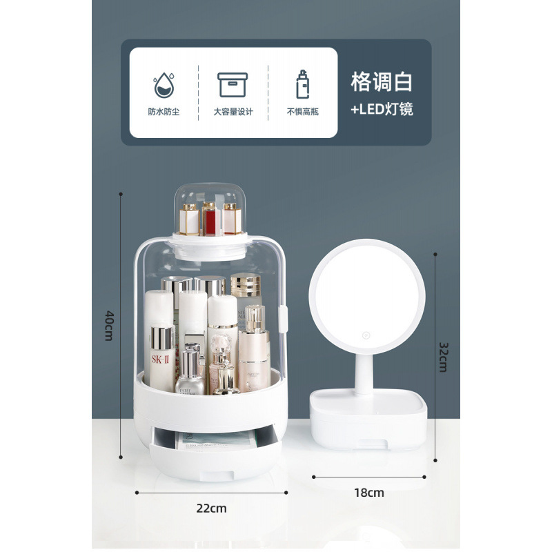 • ❤[특가 복지모델] 화이트 방진 메이크업 박스 + LED 조명 충전식 화장거울