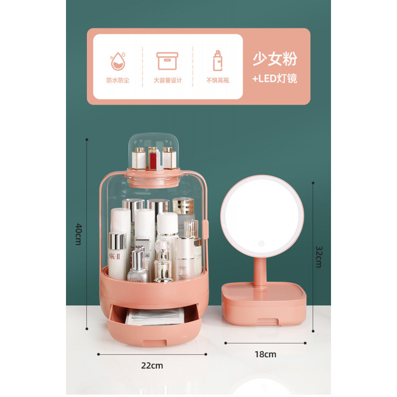 • ❤[특가 복지모델] 핑크 방진 메이크업 박스 + LED 조명 충전식 화장거울