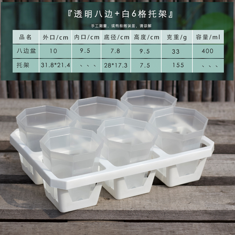 10cm 8 면 다육 화분 플라스틱 큰 직경 두꺼운 물 수용 브래킷 데스크탑 화분 난초 그릇