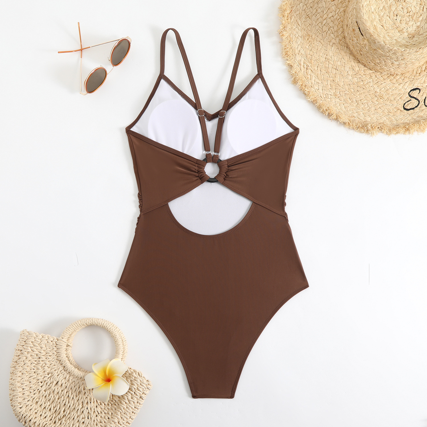2025 새로운 유럽과 미국의 국경 수영복 솔리드 컬러 링 맞춤형 여성 조각 비키니 아마존 수영복