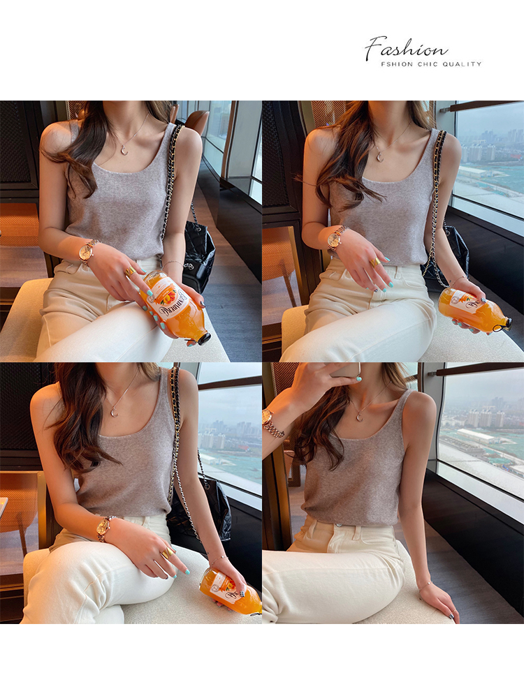 니트 카미 솔 여성 내복 세트 베이스 2025 새로운 여름 아이스 실크 아우터 커버 밀크 달콤하고 핫 탑