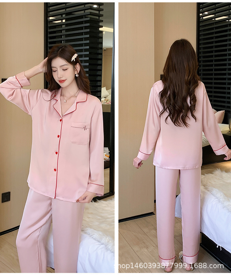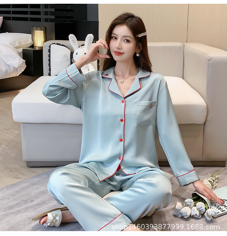 25 년의 새로운 소스 제조 업체 심전도 사랑 자수 숙녀 단색 긴 소매 바지 한 세대의 잠옷스토어 가기