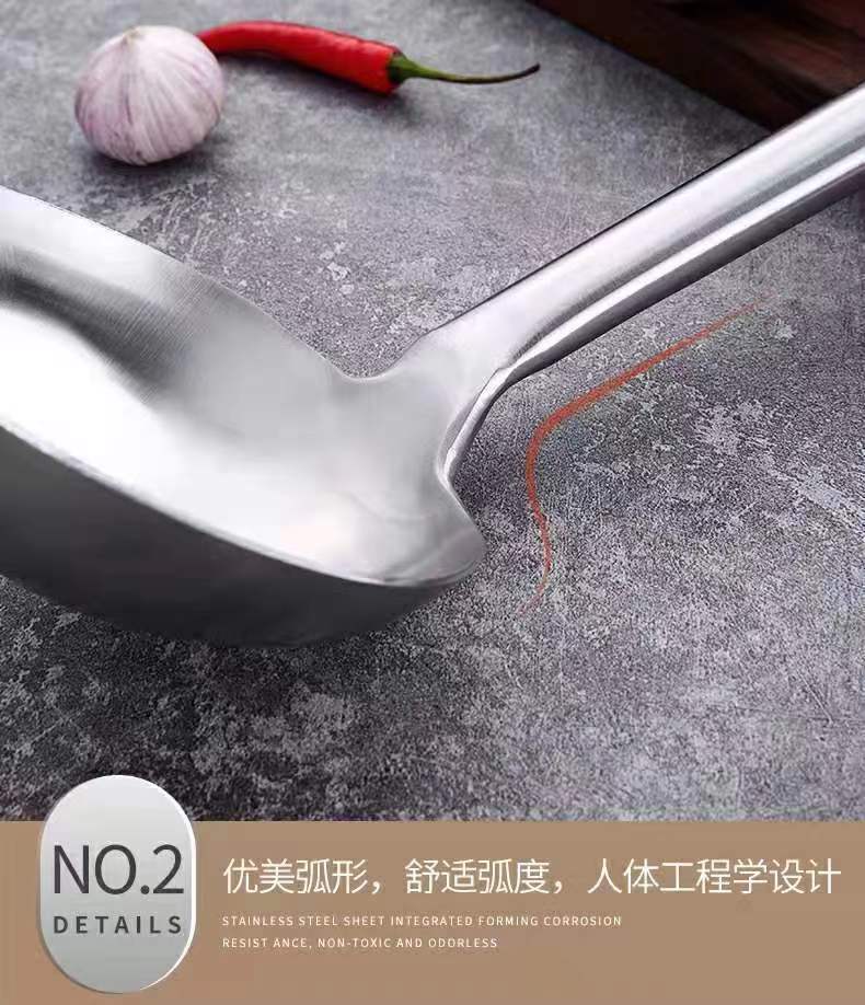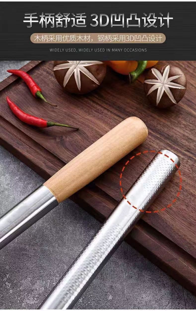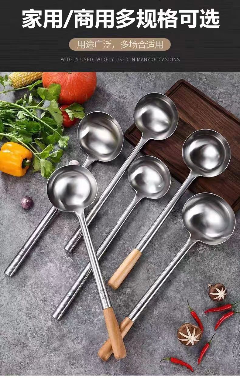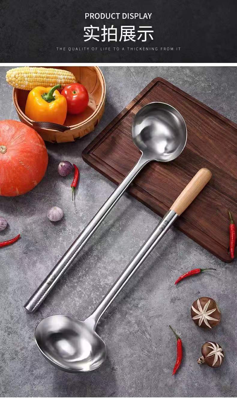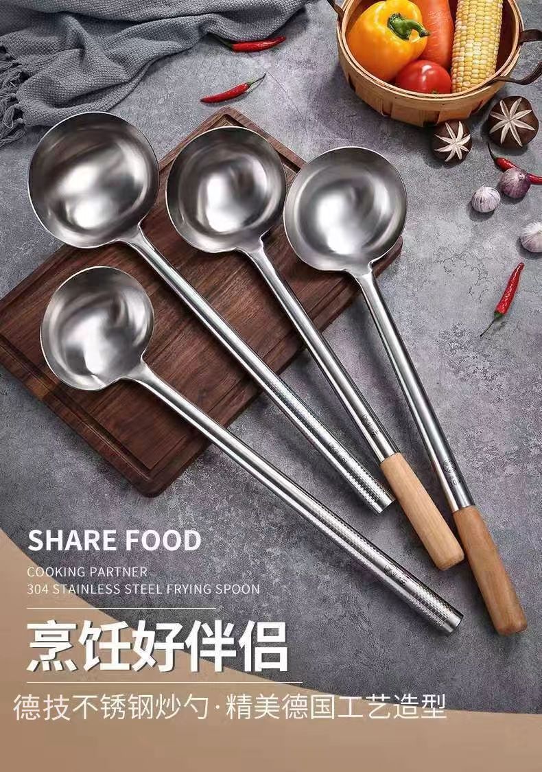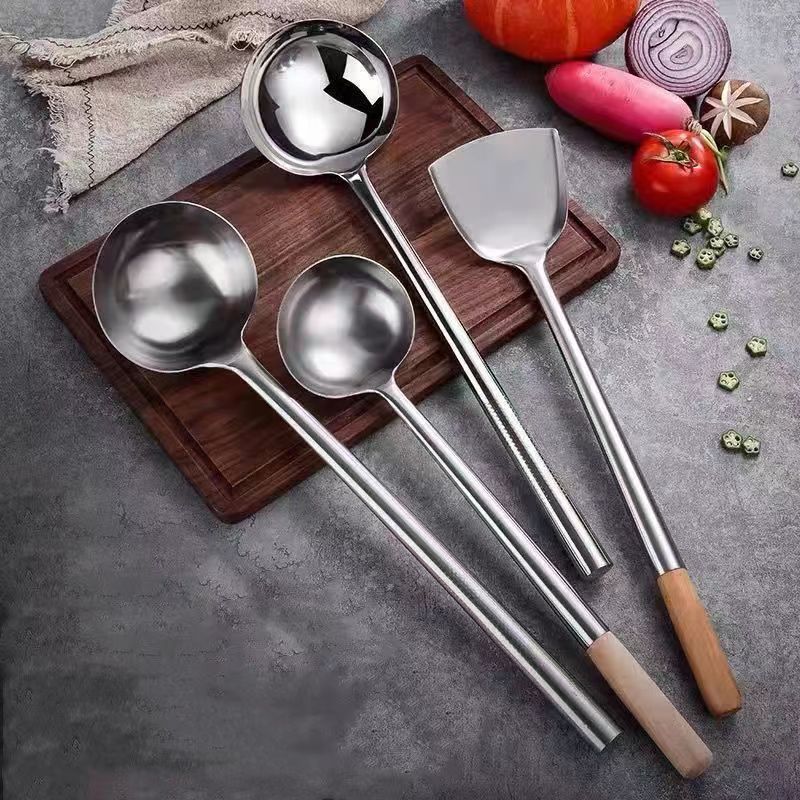 두꺼운 스테인레스 스틸 냄비 나무 손잡이 볶음 스푼 볶음 숟가락 긴 손잡이 대형 요리사 상업용 숟가락 식당 손 숟가락